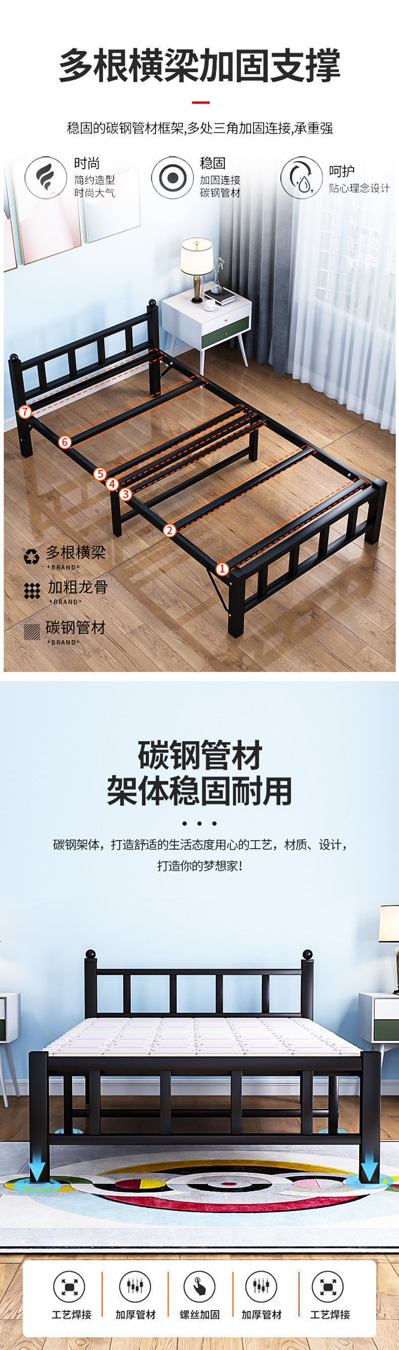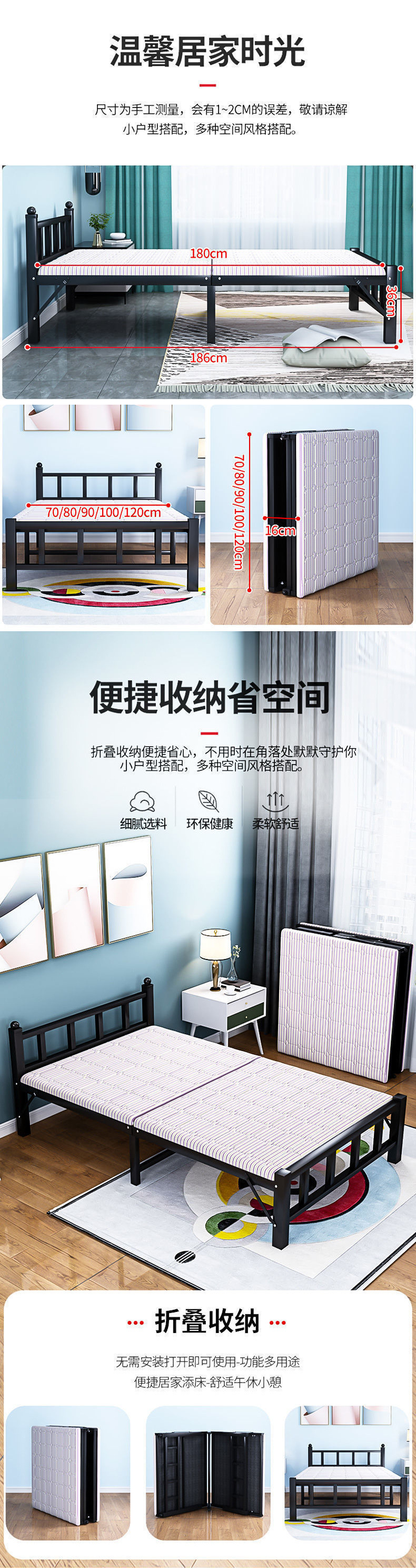 싱글 침대 1.2m 접이식 침대 싱글 철제 침대 가정용 소형 아파트 1.2m 임대 주택 동반자 하드 침대 신규스토어 가기
