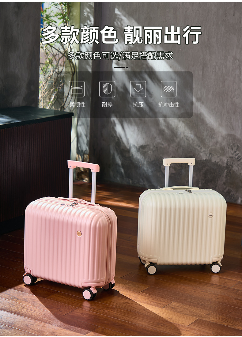 고급스러운 여행가방 18inch 여성용 탑승가방, 튼튼하고 내구성이 뛰어난 단색 소형 트롤리 케이스, 경량 가방 여행가방스토어 가기