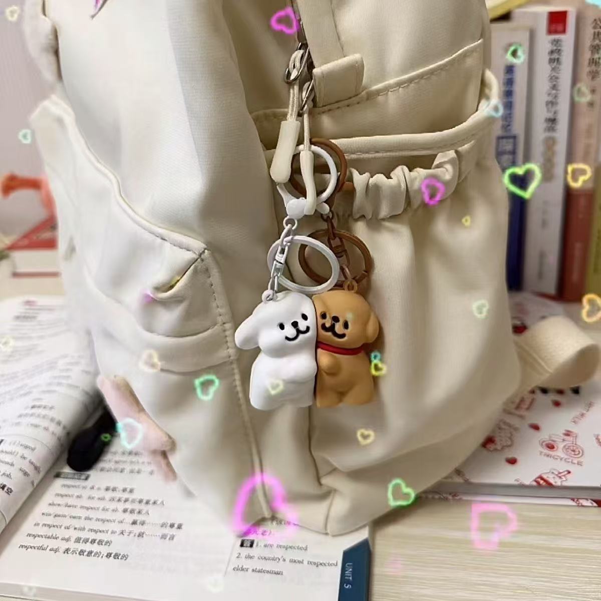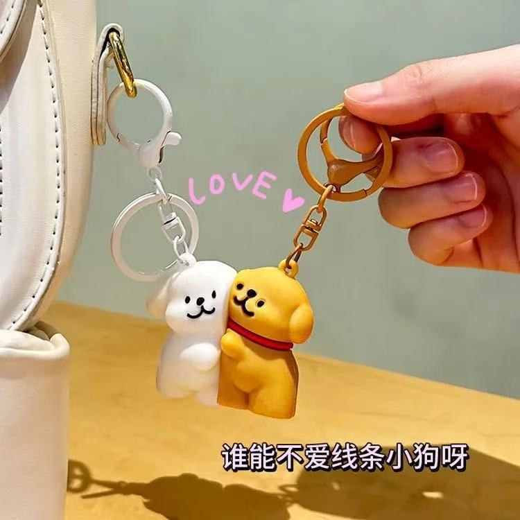 인기 있는 라인 강아지 작은 불사조 커플 자석 키체인 강아지 스티커 만화 학교 가방 자동차 포옹 펜던트