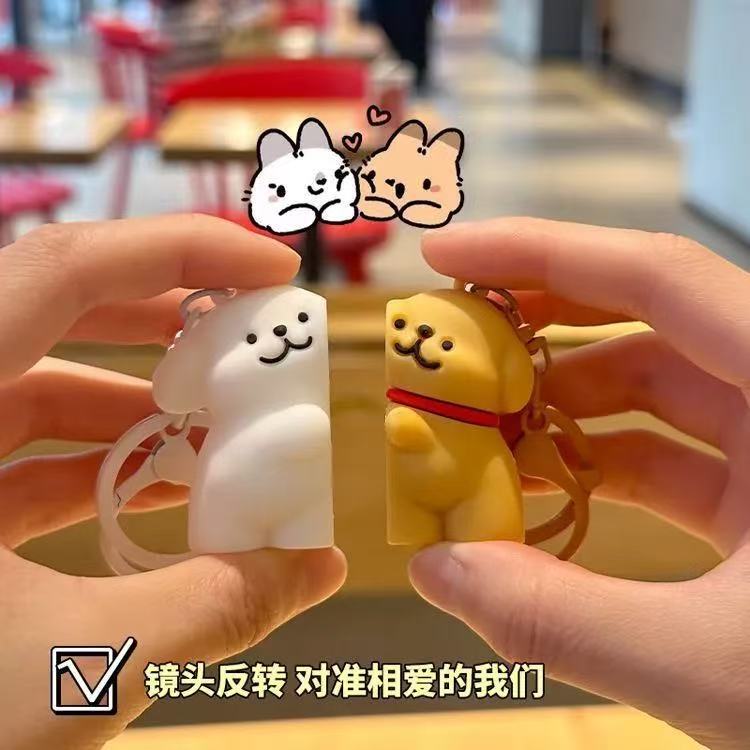 인기 있는 라인 강아지 작은 불사조 커플 자석 키체인 강아지 스티커 만화 학교 가방 자동차 포옹 펜던트스토어 가기