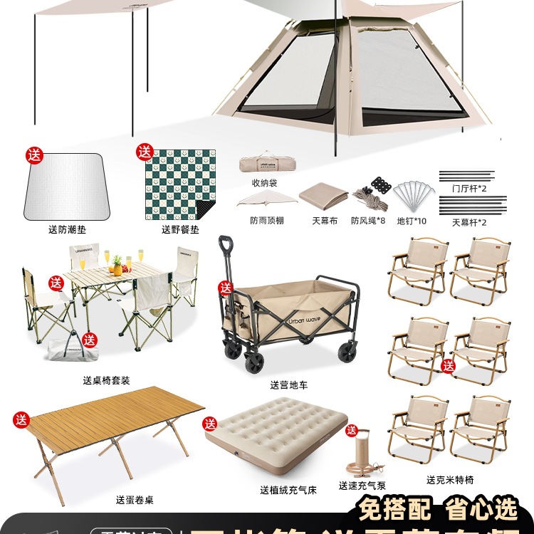 텐트 야외 접이식 휴대용 캠핑 야외 밤새 자동 캐노피 투인원 두꺼운 캠핑 장비 세트