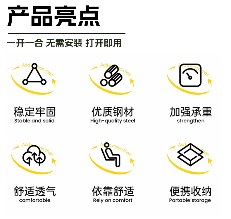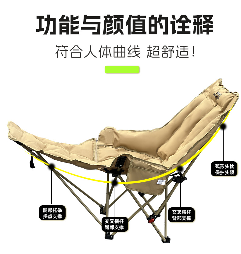 [Runaway Monster] 오피스 점심시간 플러스 면 접이식 의자 캠핑 휴대용 확장 및 두꺼운 다리 받침대 달 의자