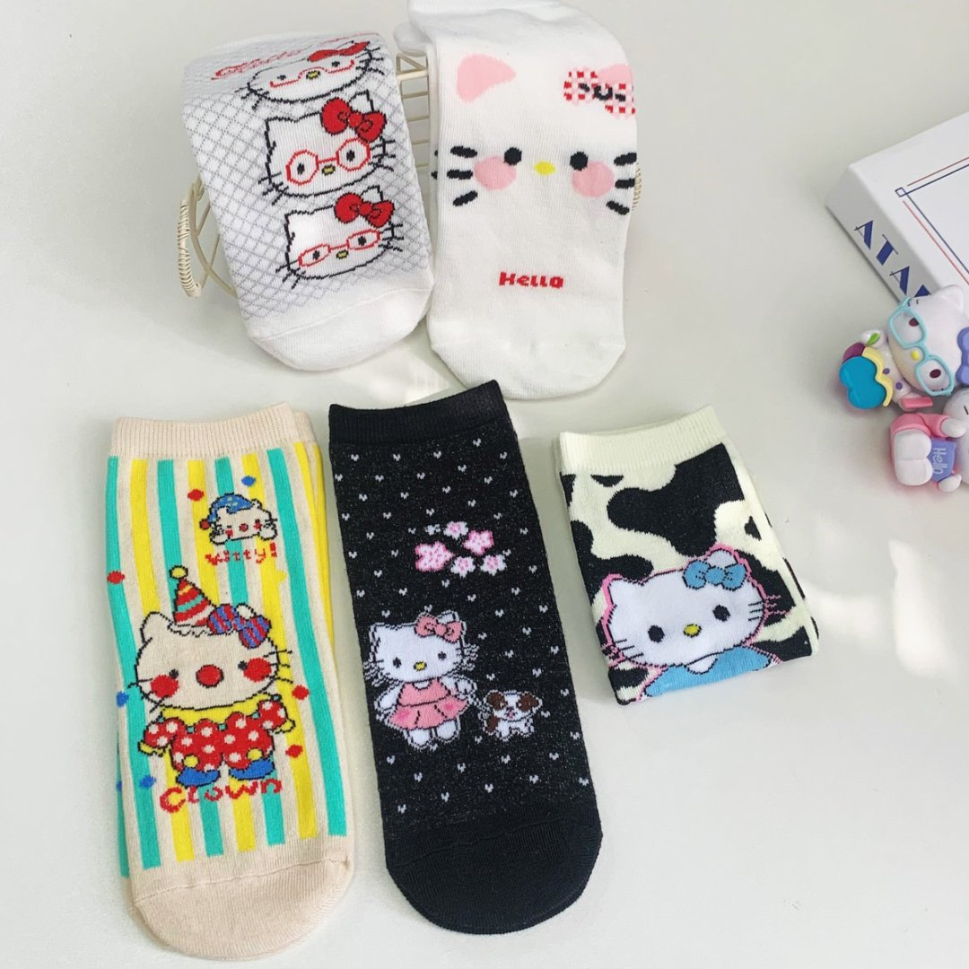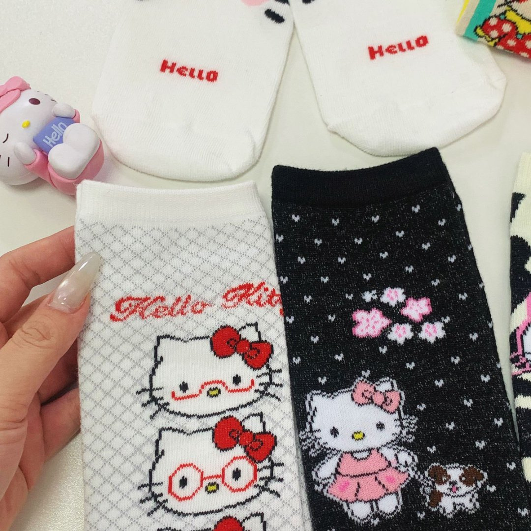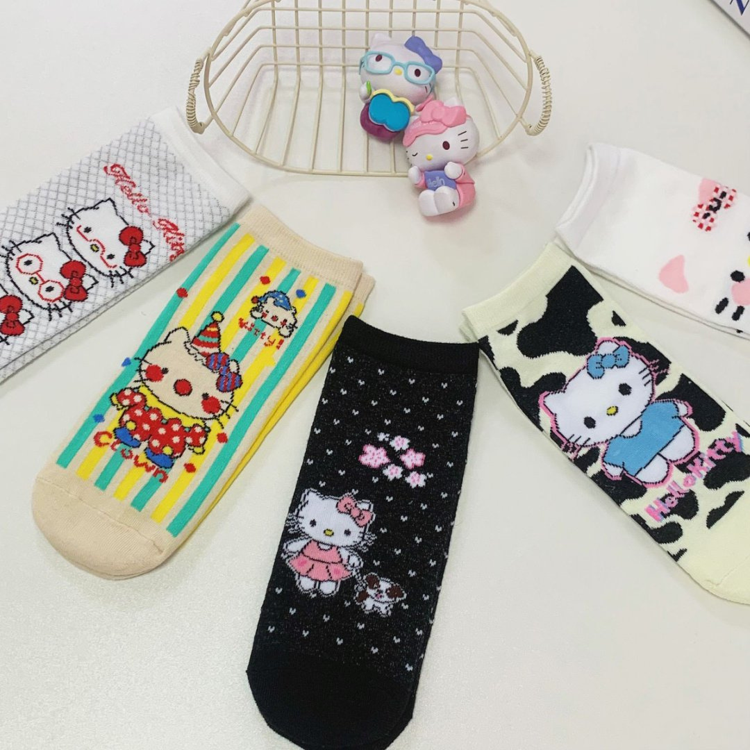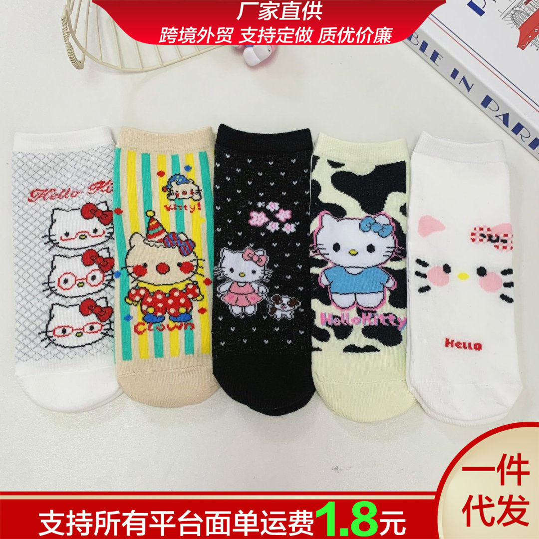 봄 여름 신상품 KT 고양이 종아리 양말 뼈없는 다용도 귀여운 만화 헬로키티 여성용 땀 흡수 및 탈취 양말스토어 가기