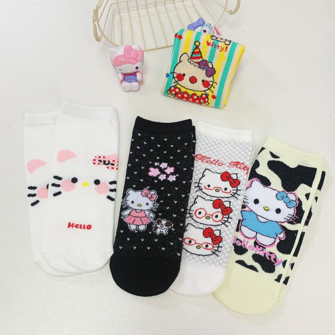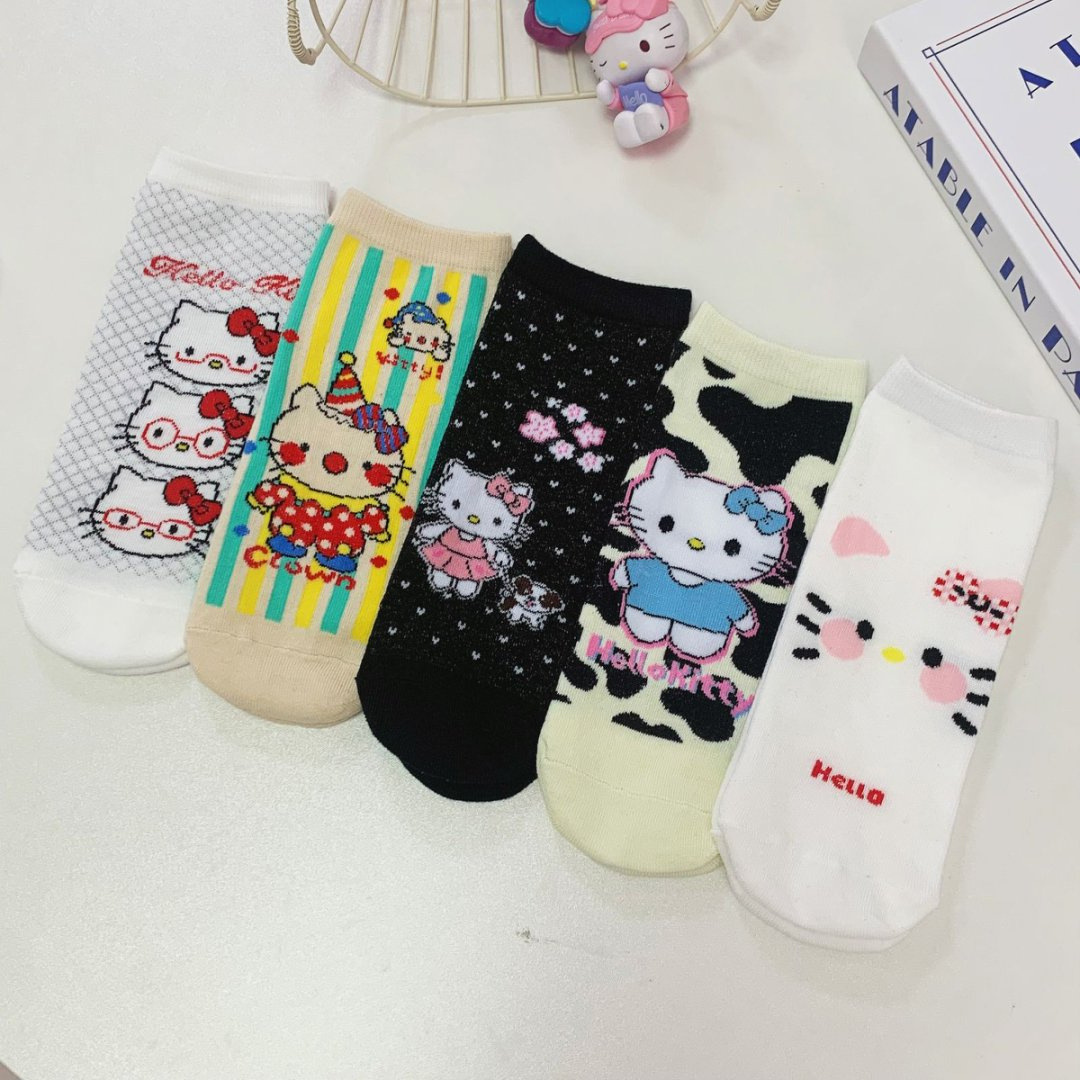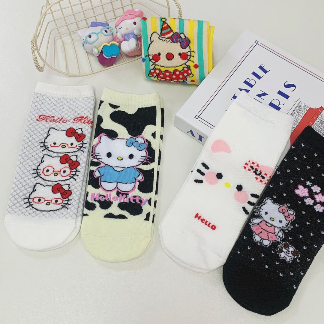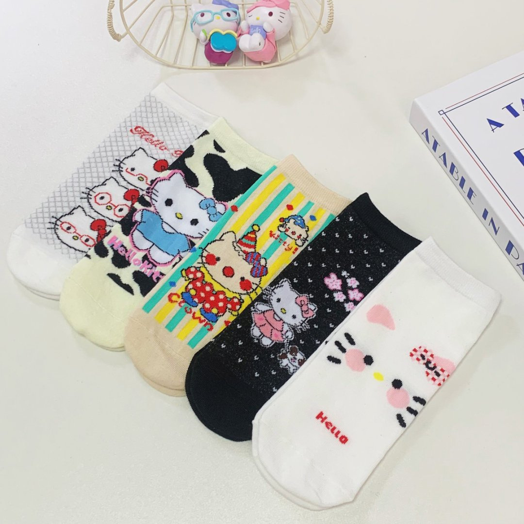 봄 여름 신상품 KT 고양이 종아리 양말 뼈없는 다용도 귀여운 만화 헬로키티 여성용 땀 흡수 및 탈취 양말스토어 가기