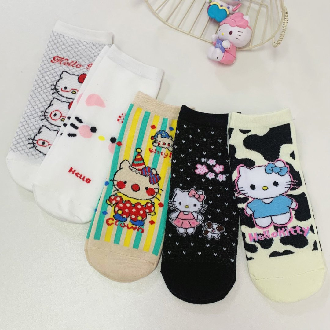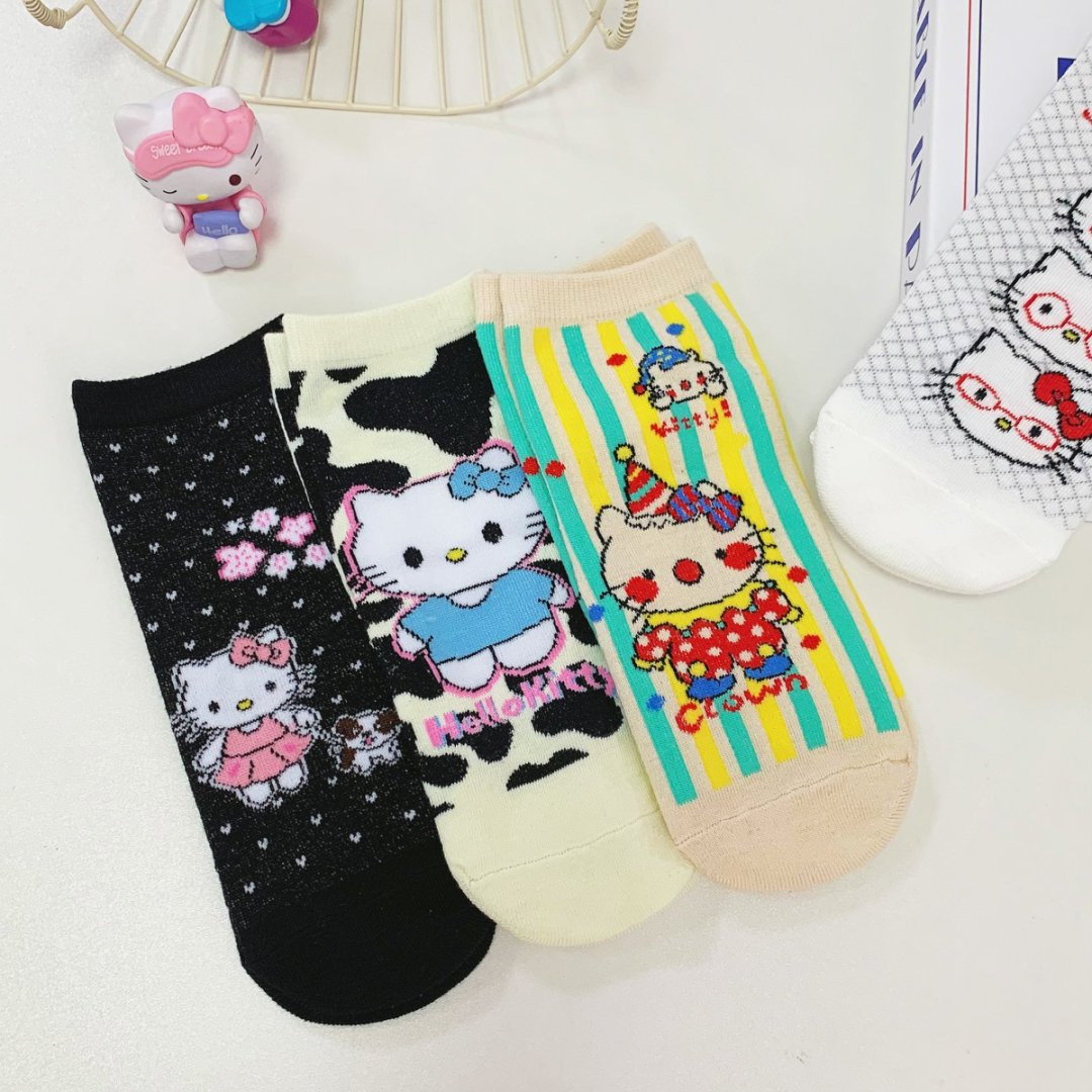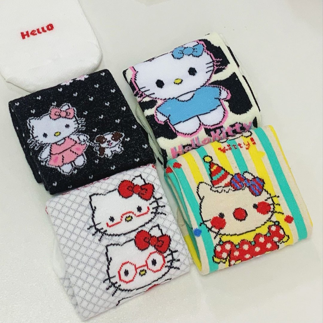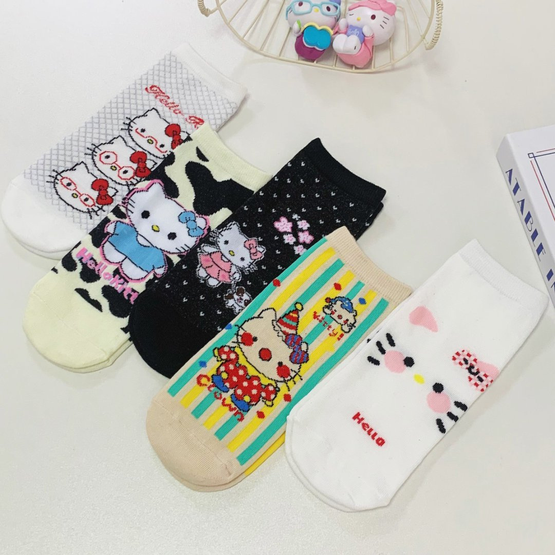 봄 여름 신상품 KT 고양이 종아리 양말 뼈없는 다용도 귀여운 만화 헬로키티 여성용 땀 흡수 및 탈취 양말스토어 가기