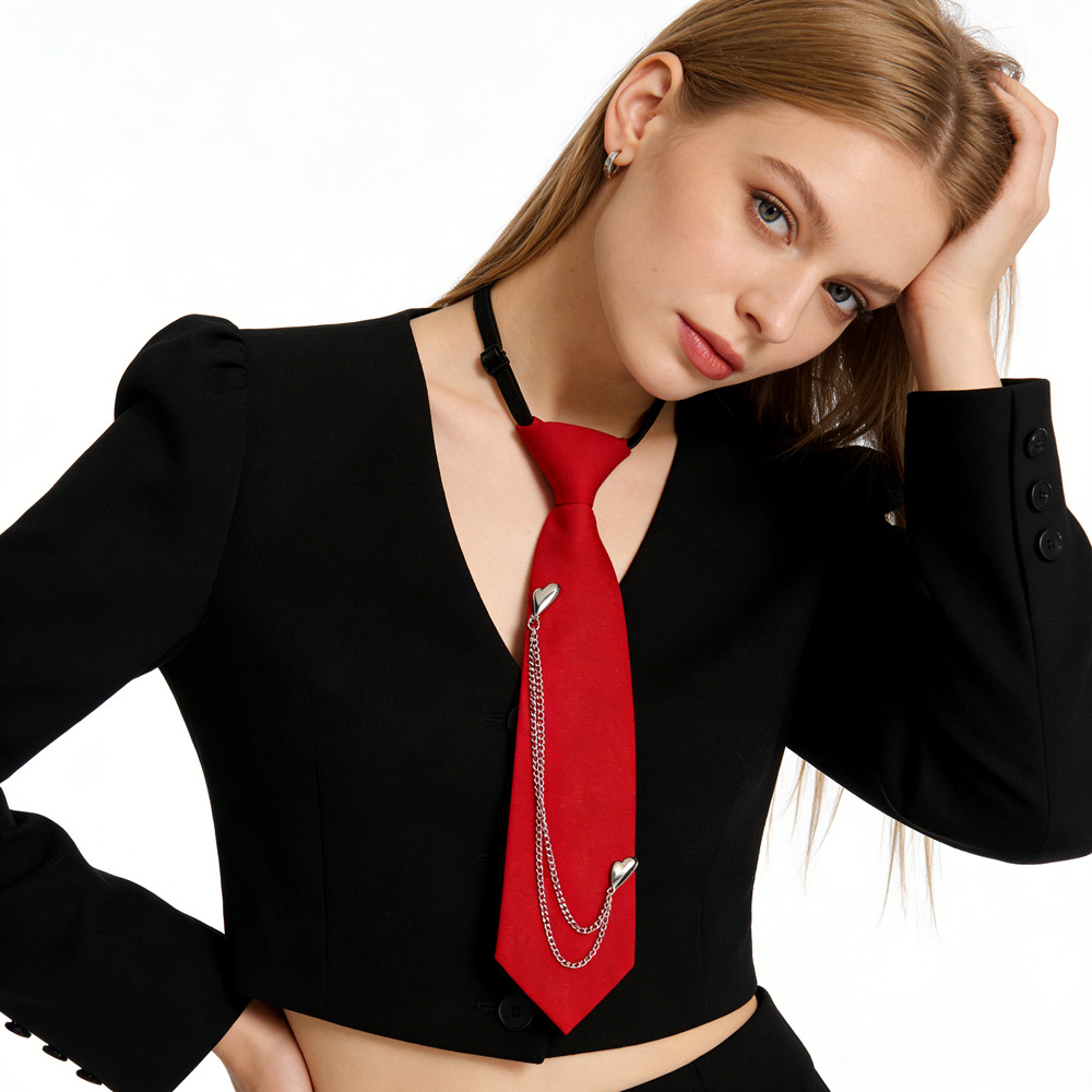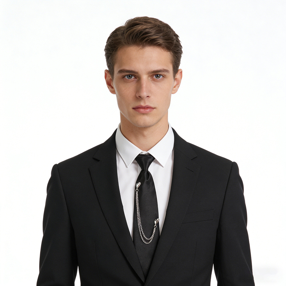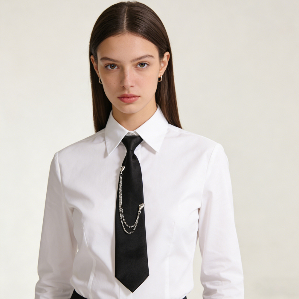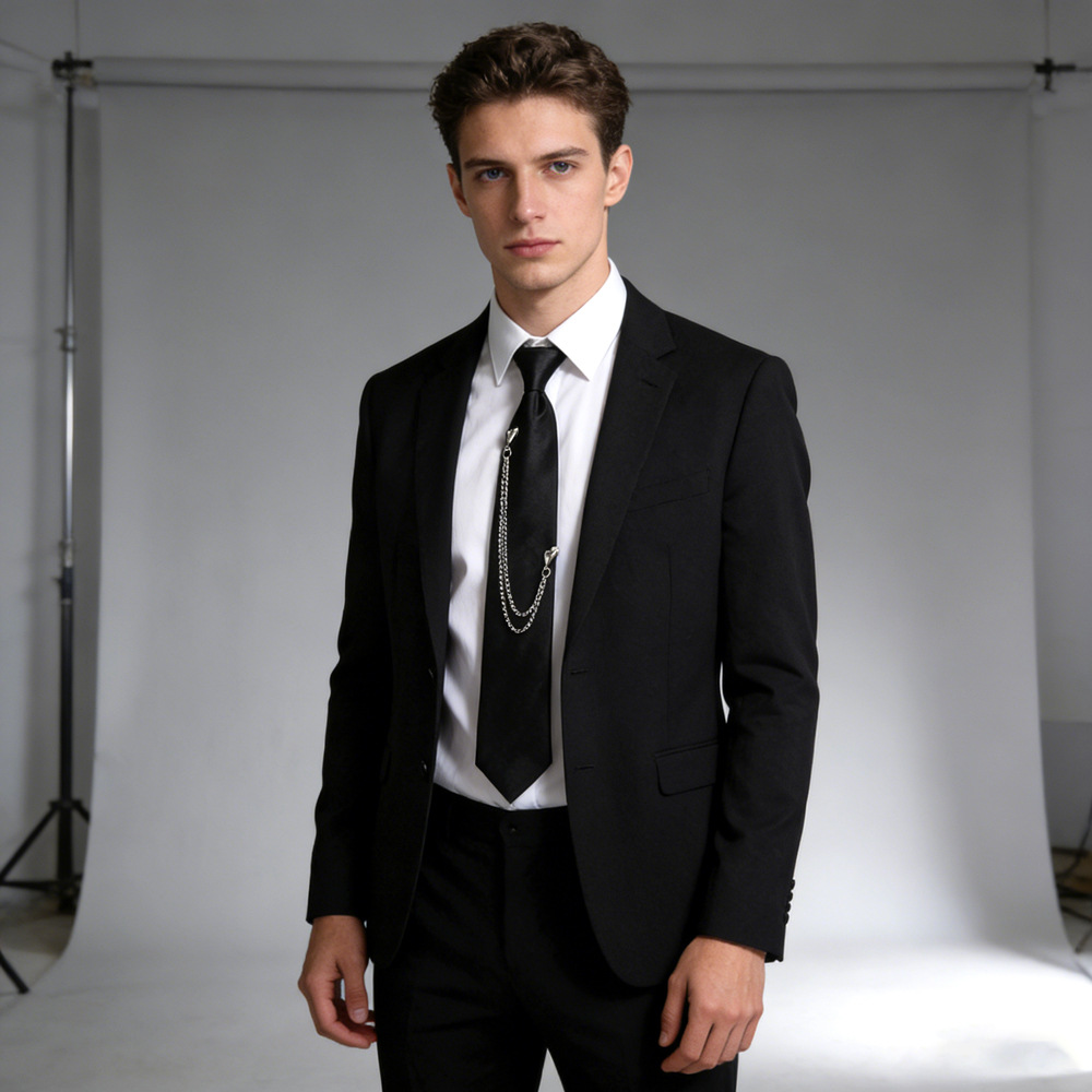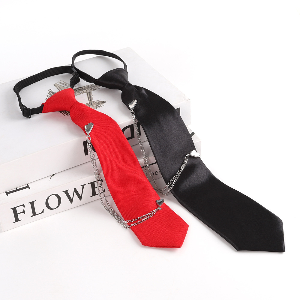 넥타이 도매 남성과 여성에게 적합한 펑크 금속 체인 넥타이 유니폼에 적합한 조절 가능한 검은색 넥타이스토어 가기