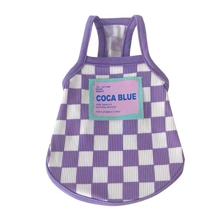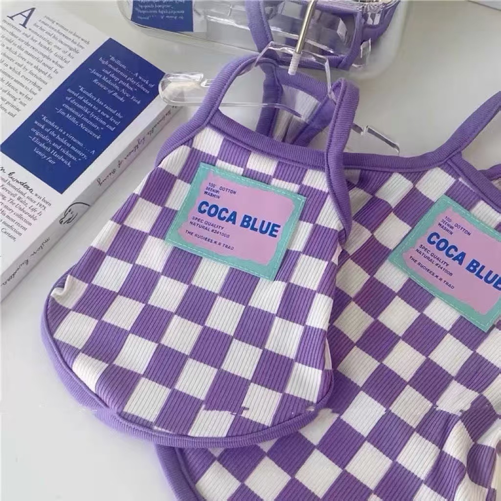 애완 동물 고양이와 개 봄과 여름 보라색 문자 바둑판 작은 슬링 작은 개 테디 비숑 슬링