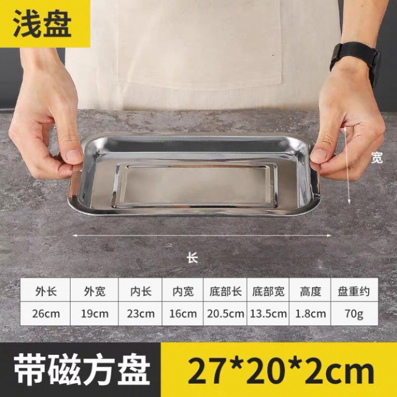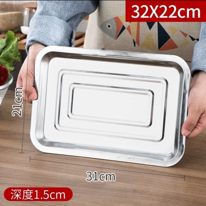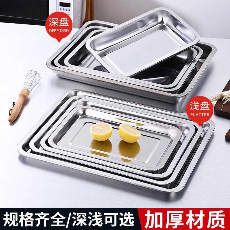 트레이 스테인레스 스틸 사각형 접시 가정용 상업용 바베큐 접시 철 접시 직사각형 두꺼운 만두 접시 깊은 사각형 접시 간단한스토어 가기