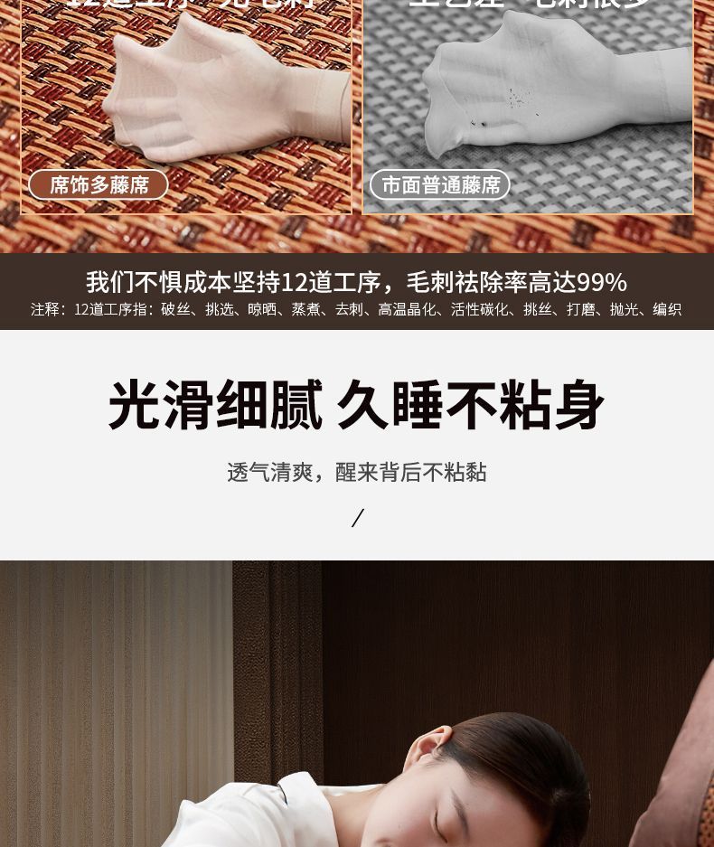 천연 순수 등나무 매트, 두꺼운 접이식 매트, 양면 이중 용도 침대 시트, 얼음 실크 부드러운 매트, 엄마와 아기가 사용할 수 있음