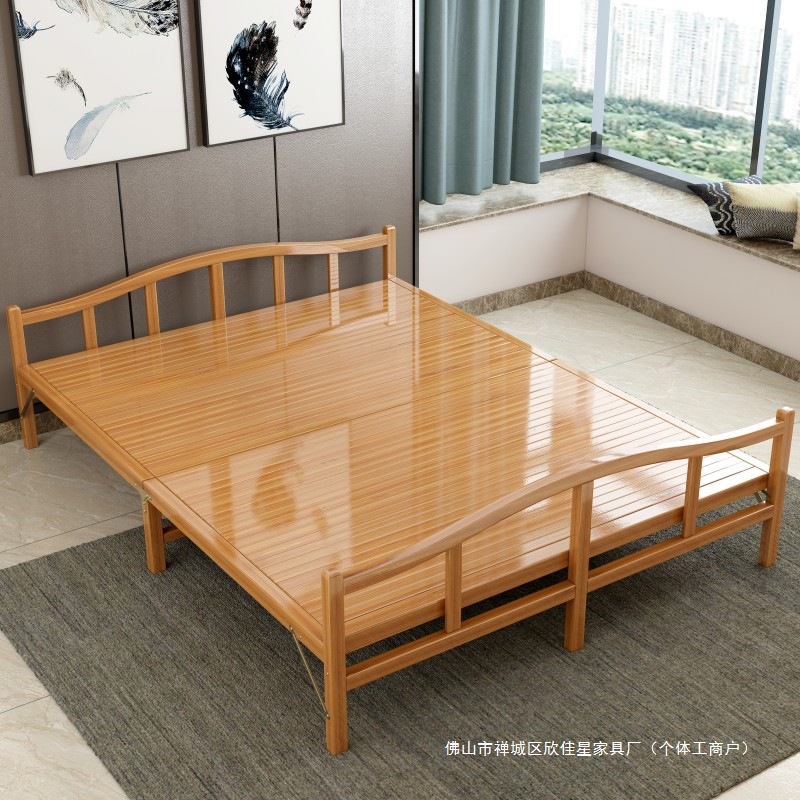 대나무 침대 접이식 침대 싱글 대나무 더블 간단한 가정용 성인 점심 시간 시원한 침대 임대실 단단한 대나무 판자 나무 침대스토어 가기