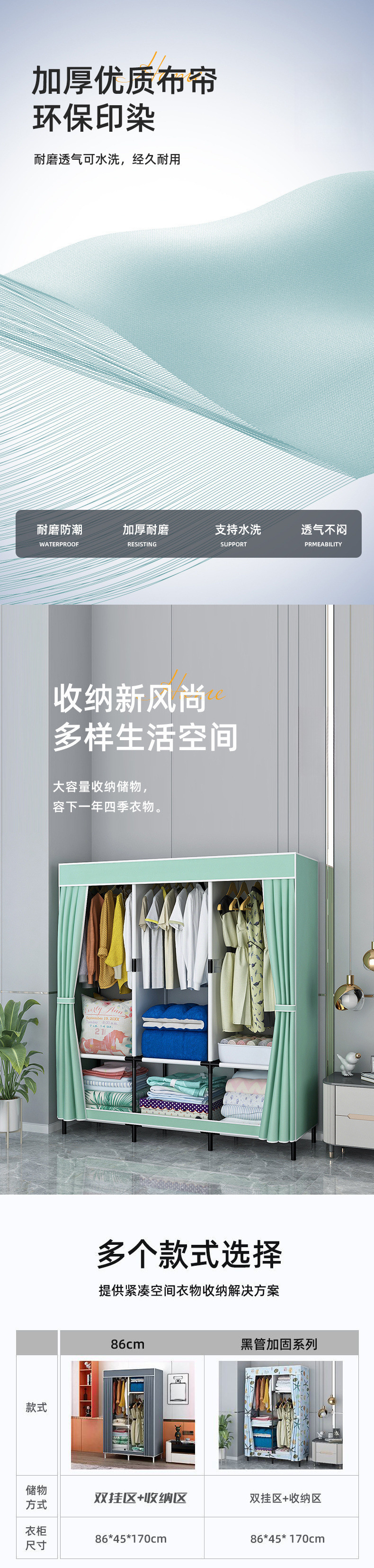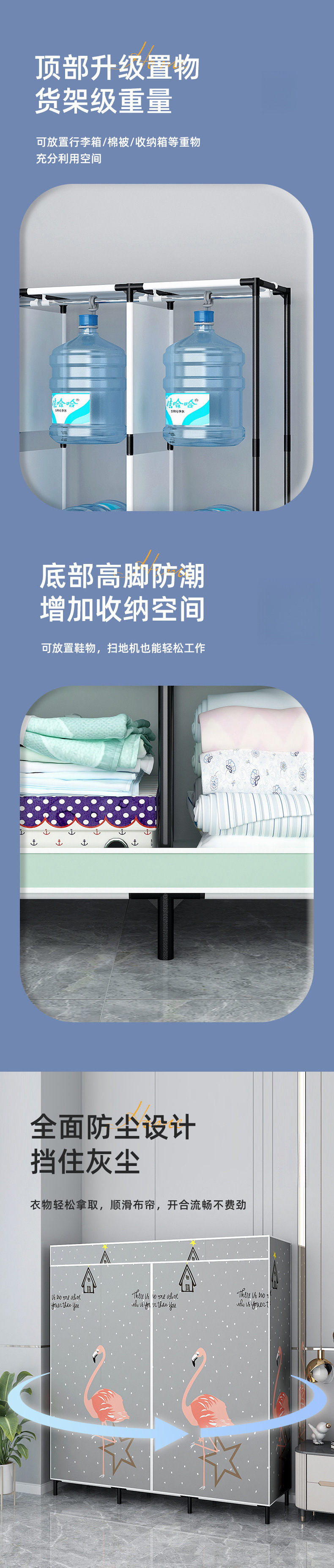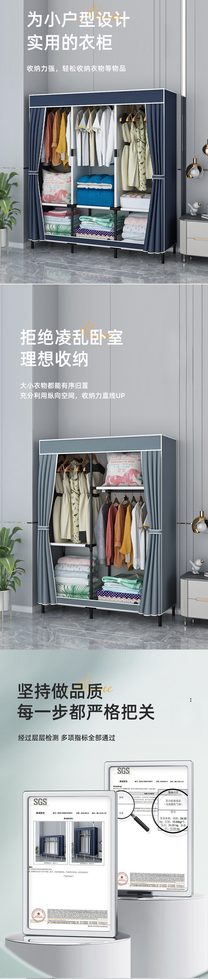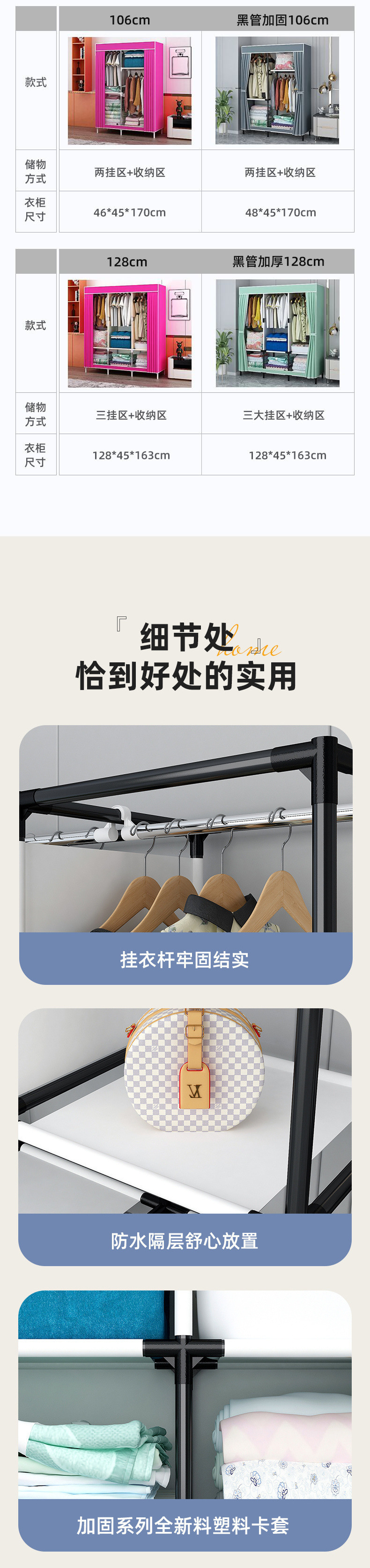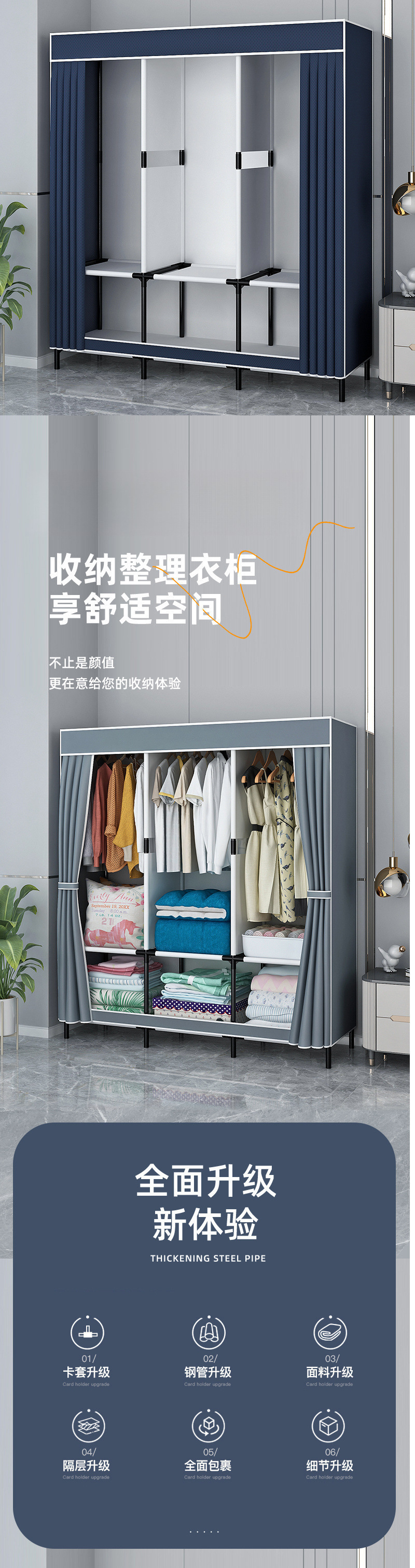 가정용 침실용 간단한 옷장, 내구성이 뛰어나고 두꺼운 조립, 견고한 1인용 두꺼운 작은 아파트 임대용 작은 옷장스토어 가기