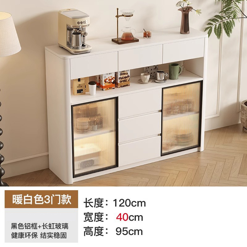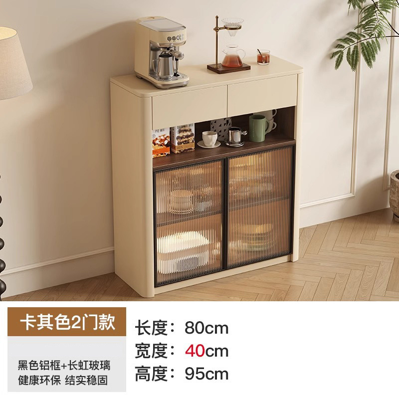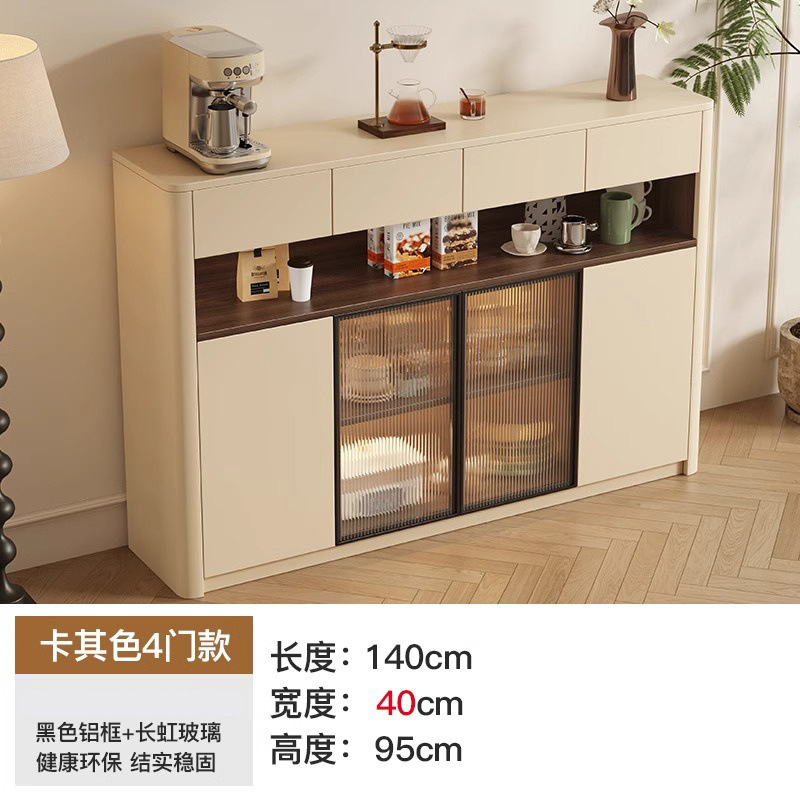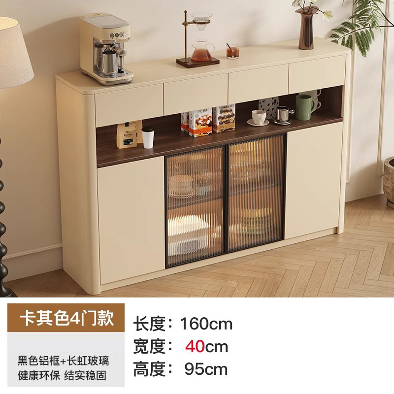 크림 스타일 원목 찬장 벽 일체형 수납 캐비닛 주방 캐비닛 거실 현관 캐비닛 대용량 차 수납 캐비닛스토어 가기