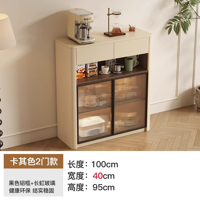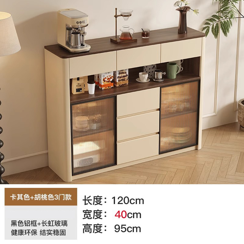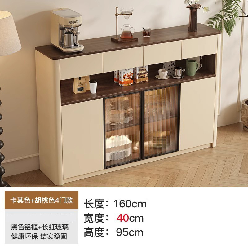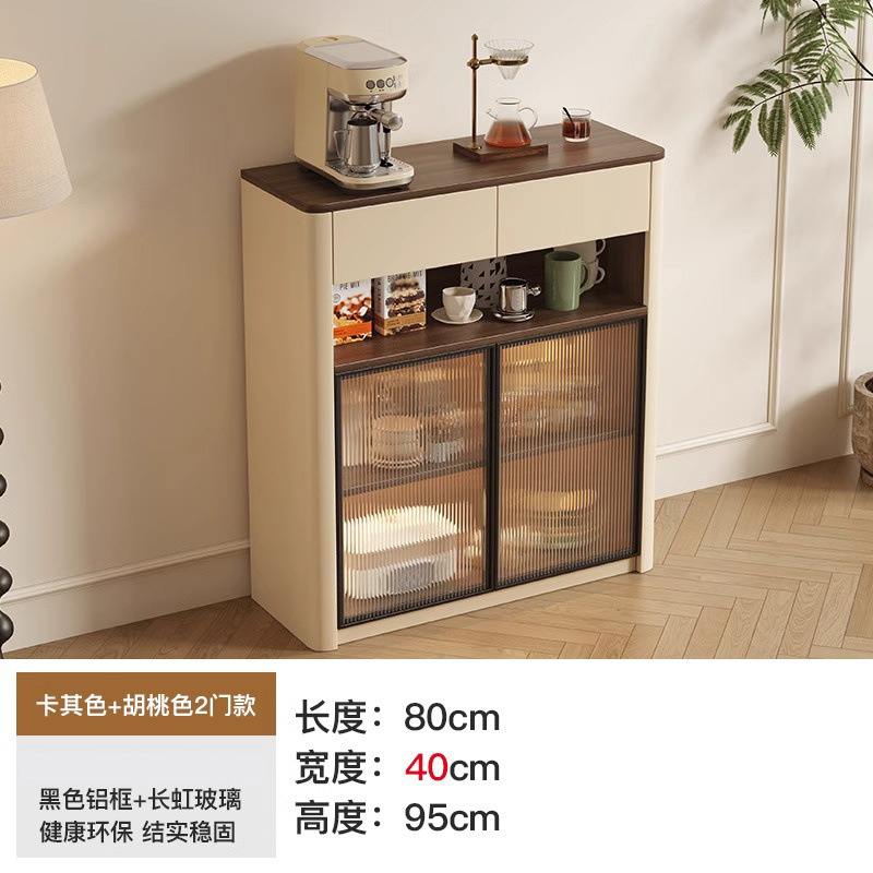 크림 스타일 원목 찬장 벽 일체형 수납 캐비닛 주방 캐비닛 거실 현관 캐비닛 대용량 차 수납 캐비닛