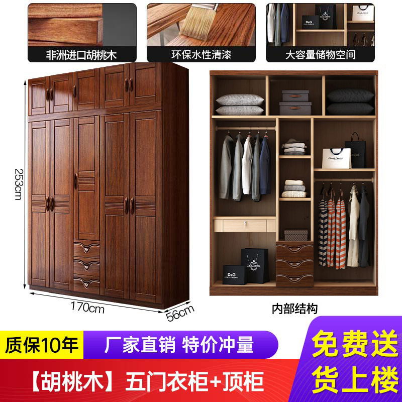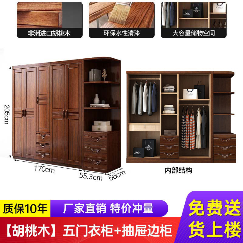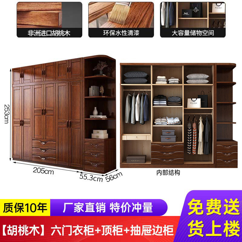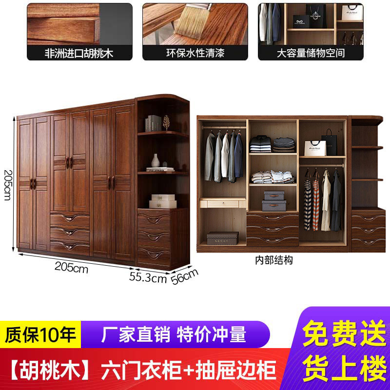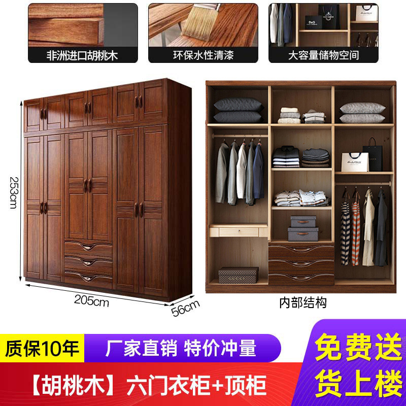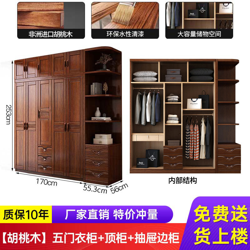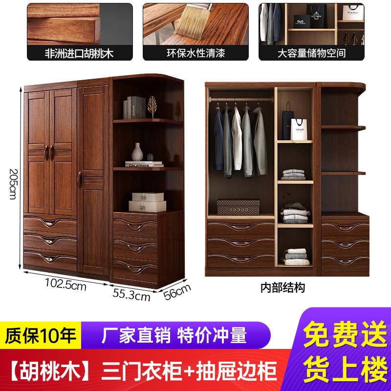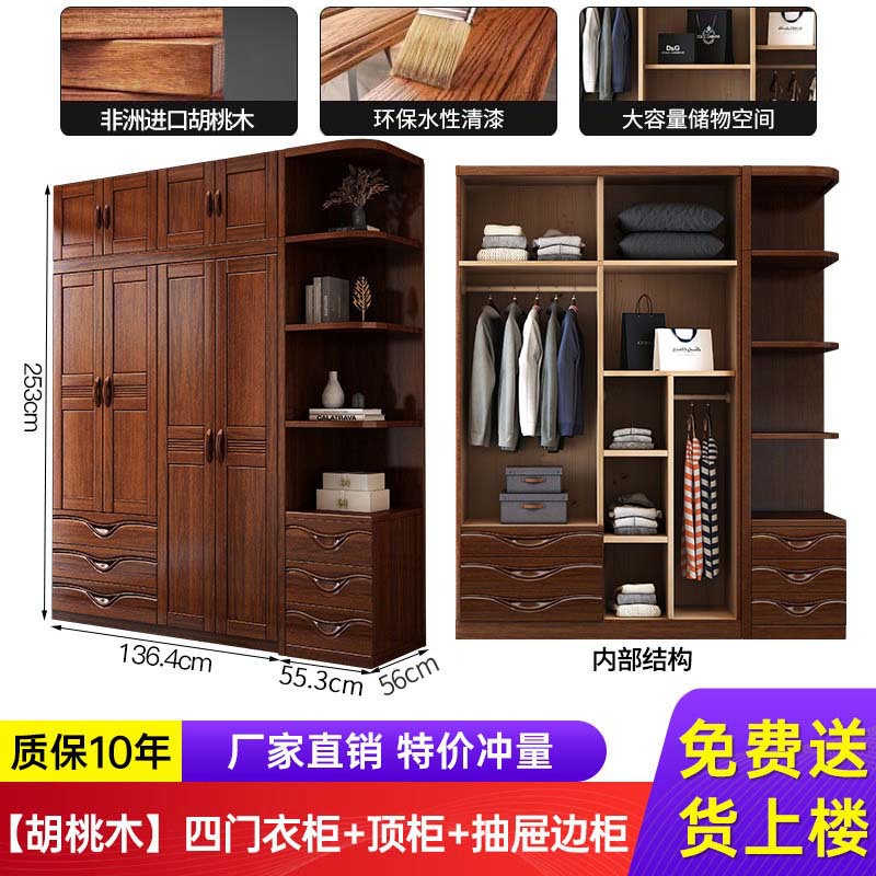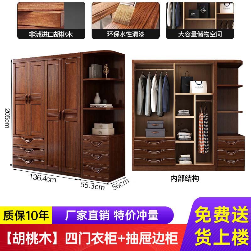 호두나무 원목 옷장 통나무 다층 대형 옷장 수납 수납 캐비닛 원목 홈 침실 경제적스토어 가기