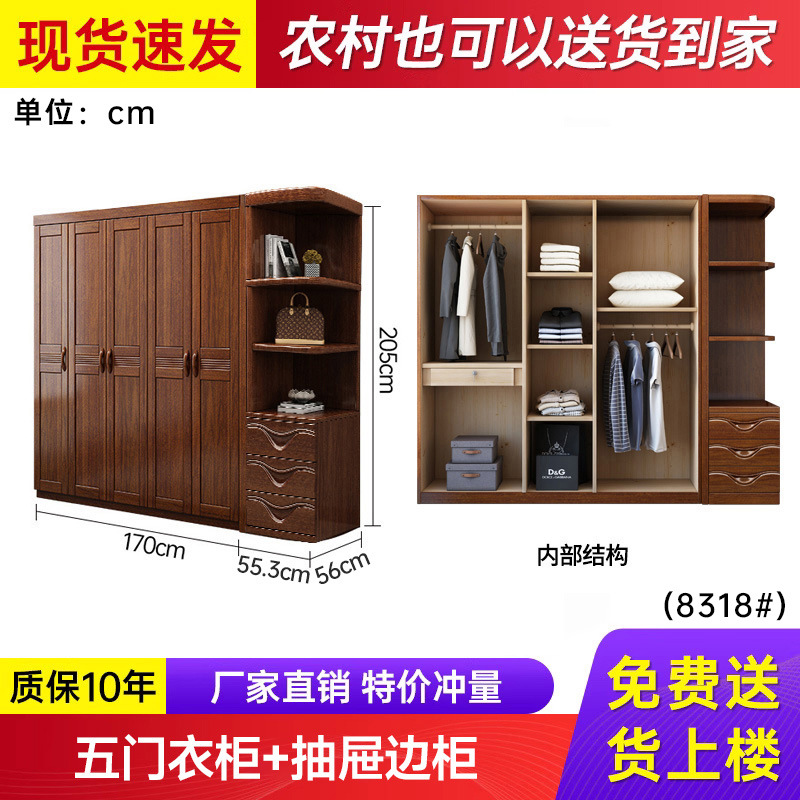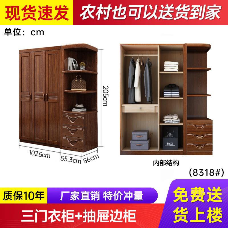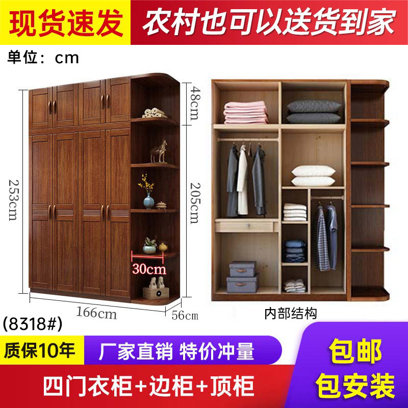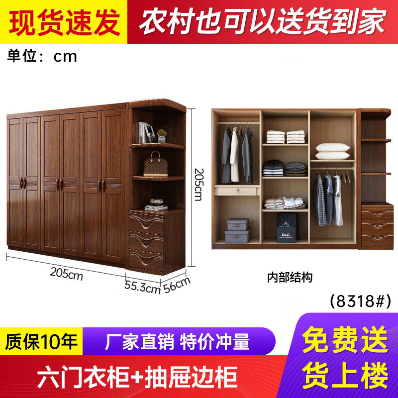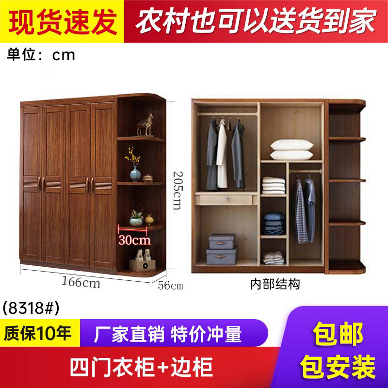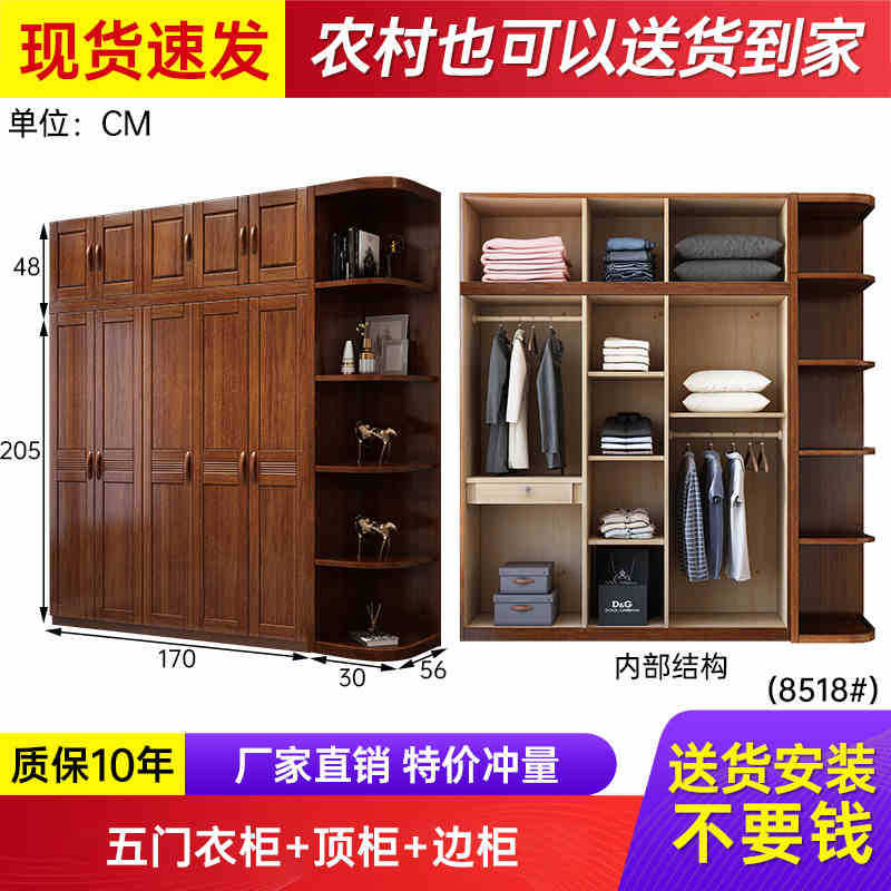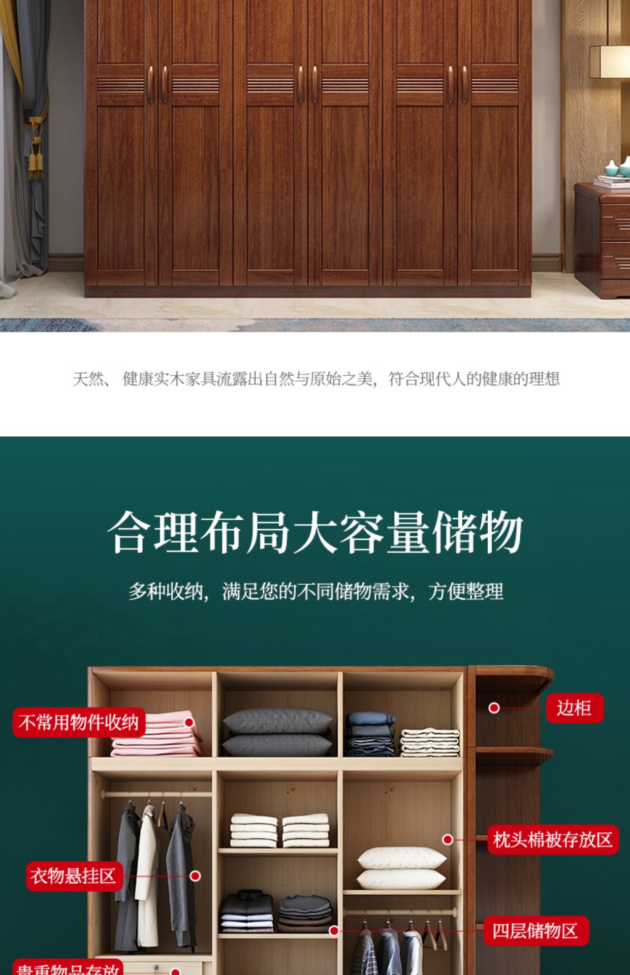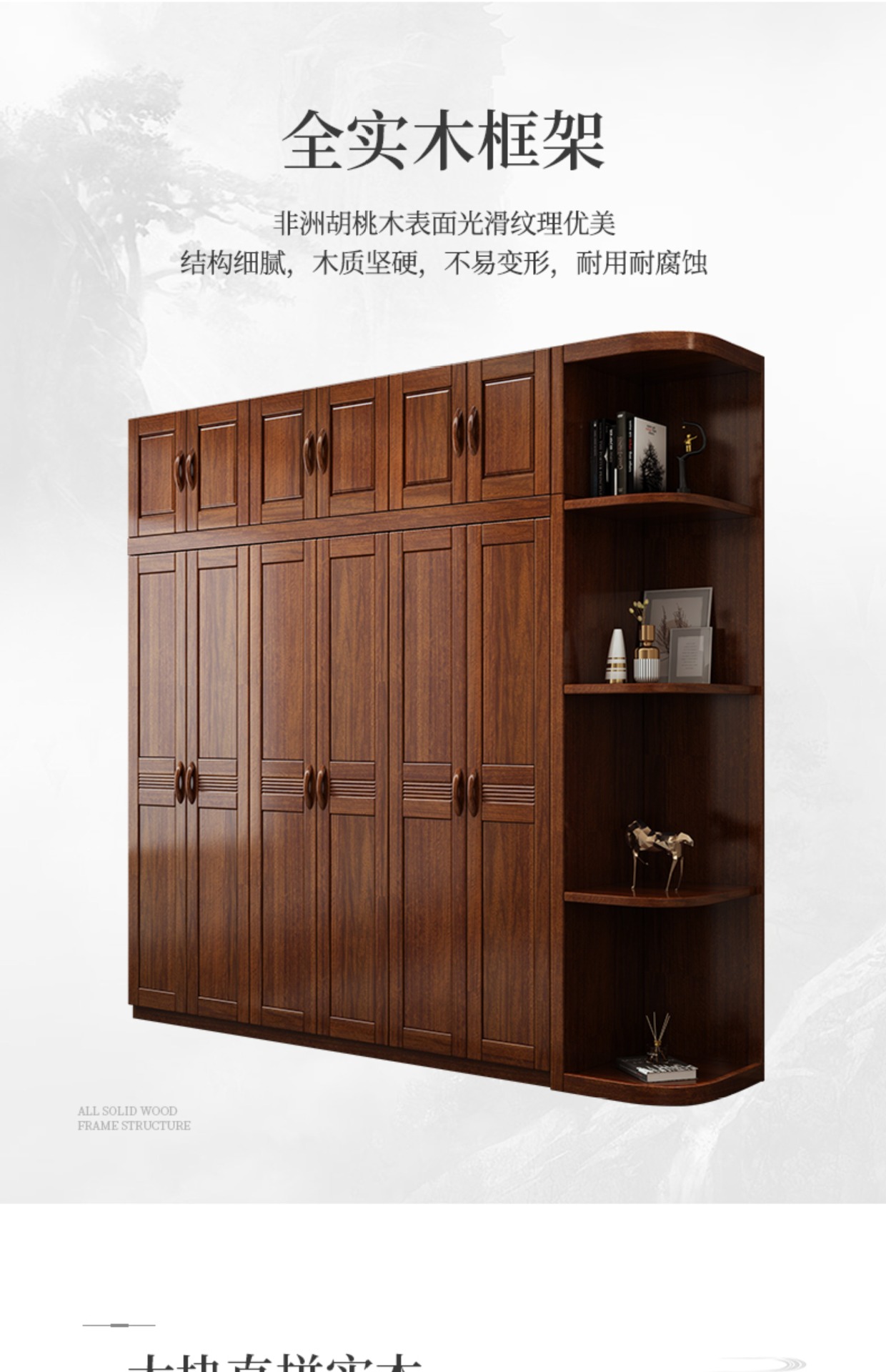 호두나무 원목 옷장 통나무 다층 대형 옷장 수납 수납 캐비닛 원목 홈 침실 경제적스토어 가기
