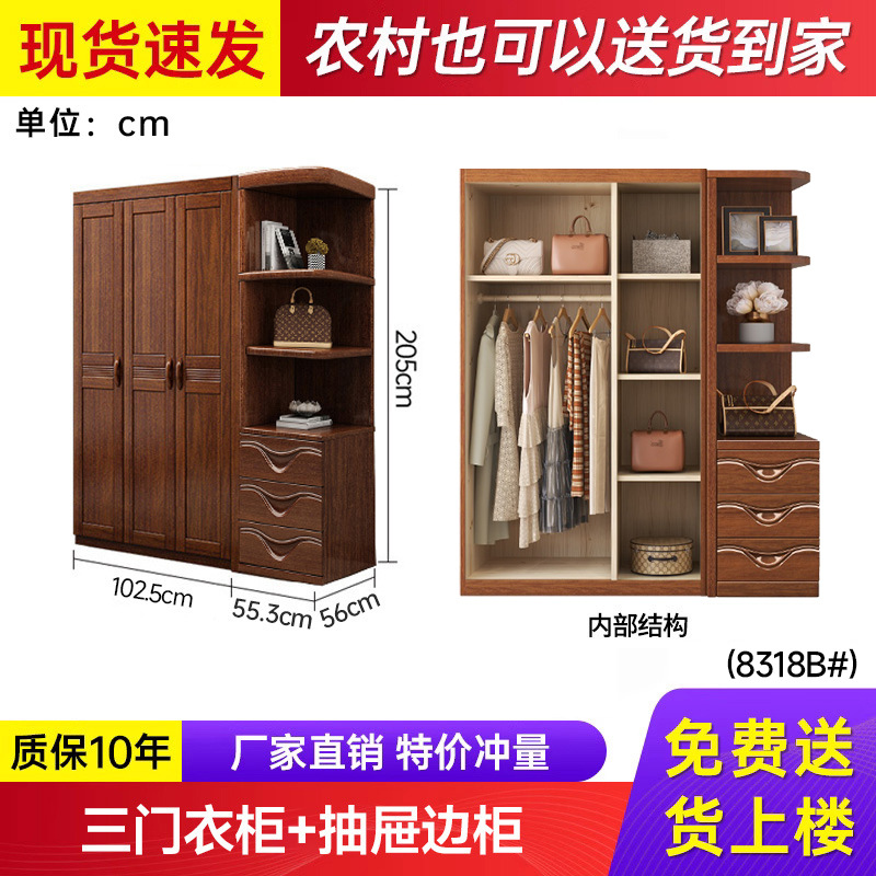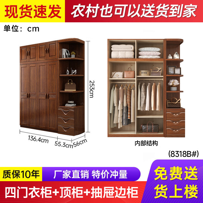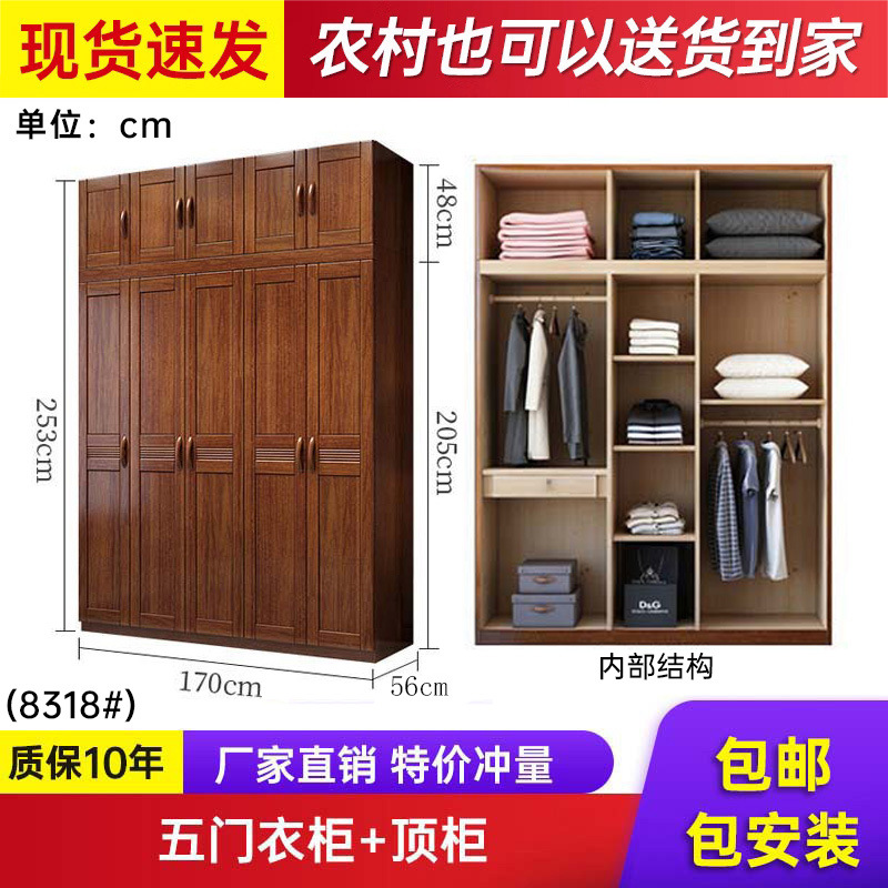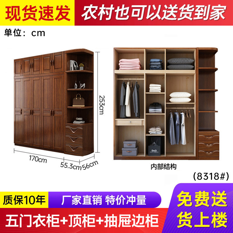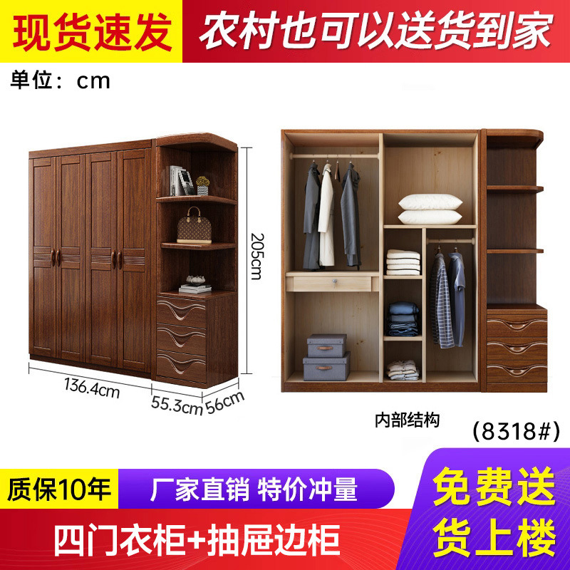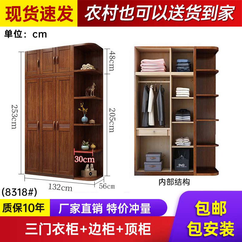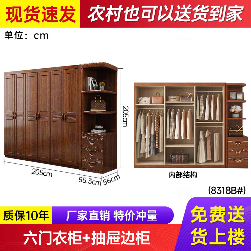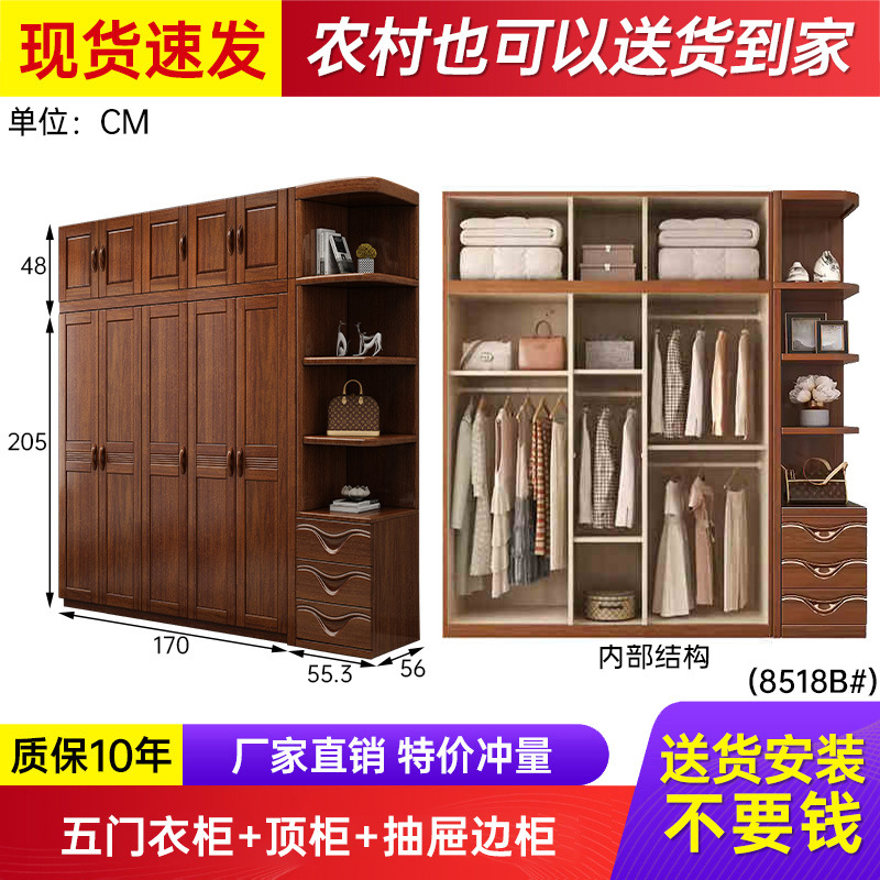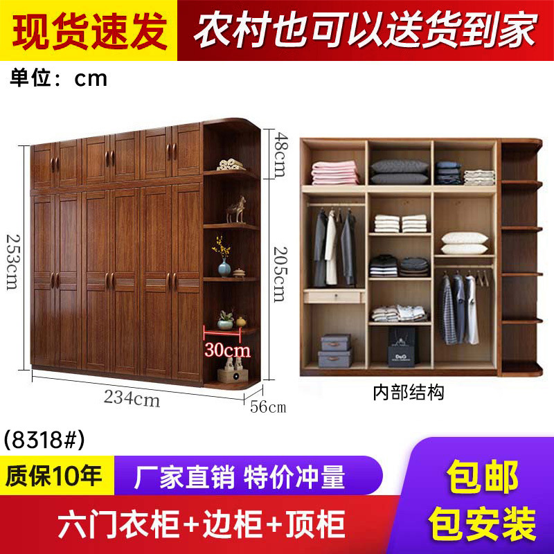호두나무 원목 옷장 통나무 다층 대형 옷장 수납 수납 캐비닛 원목 홈 침실 경제적스토어 가기