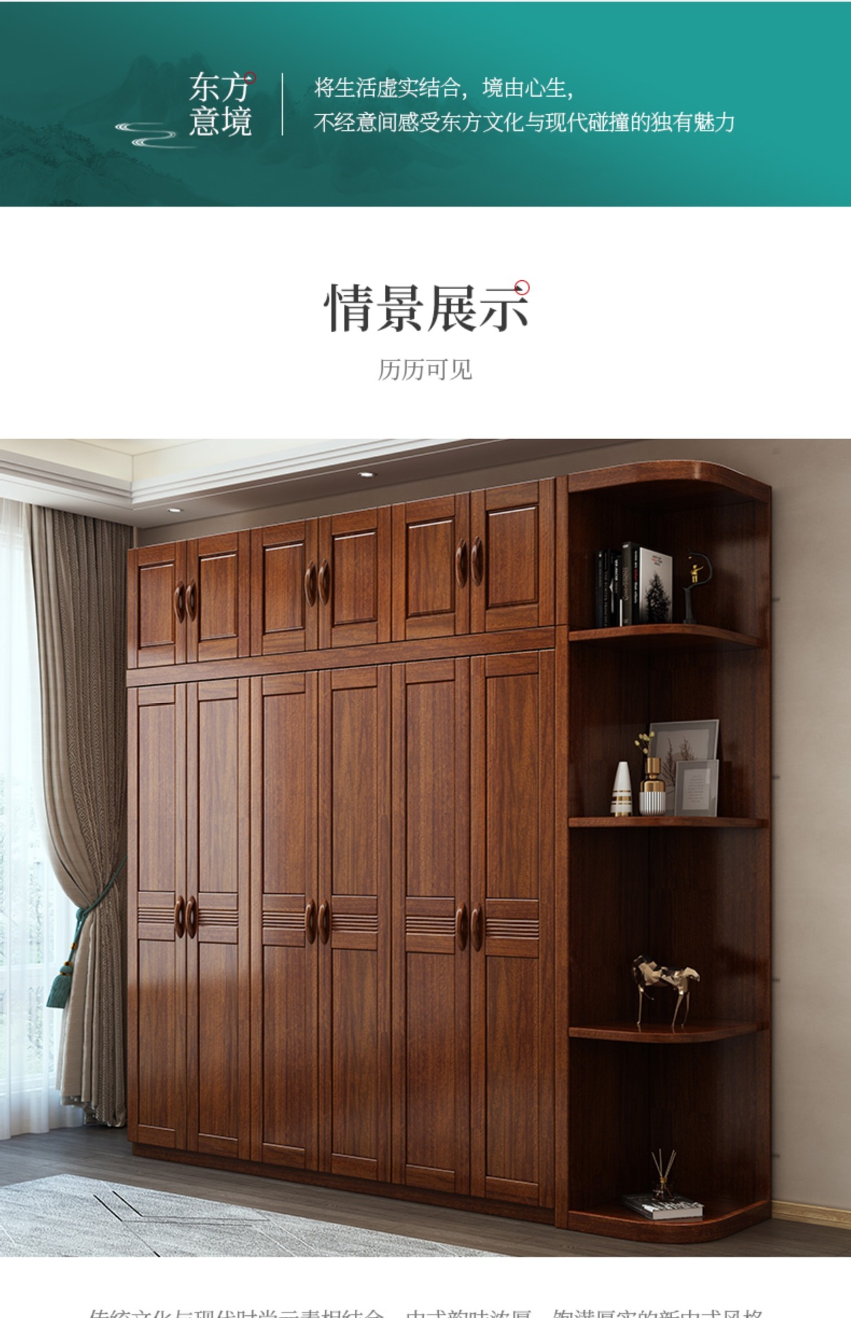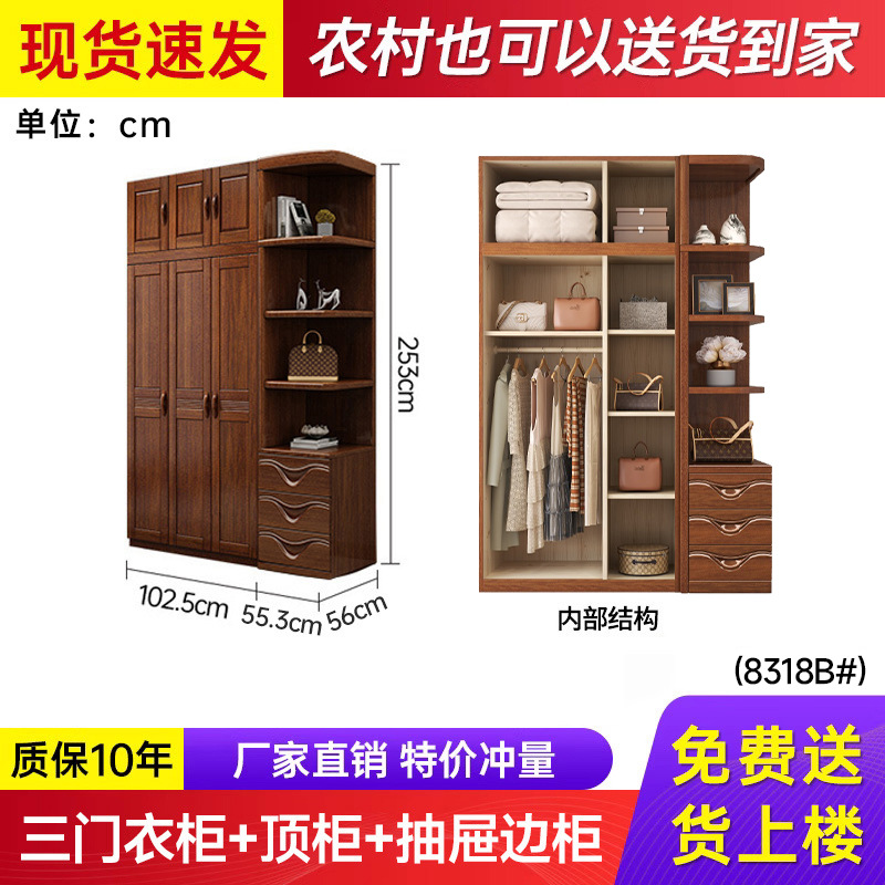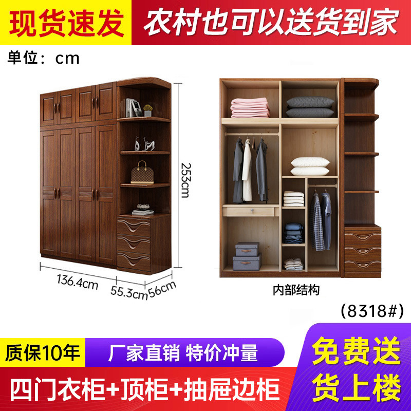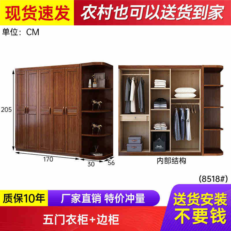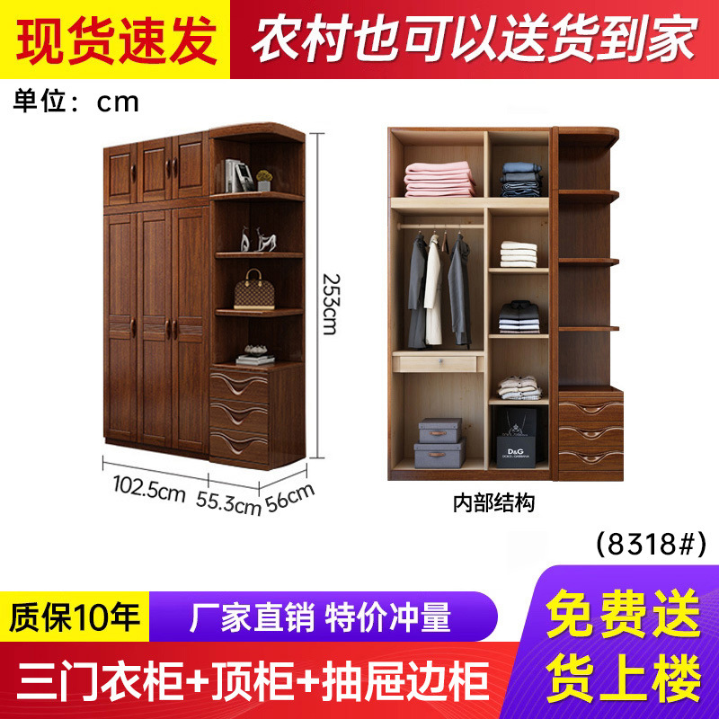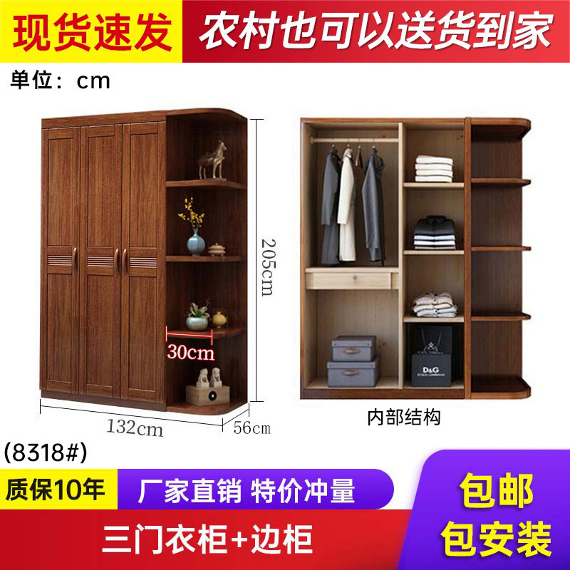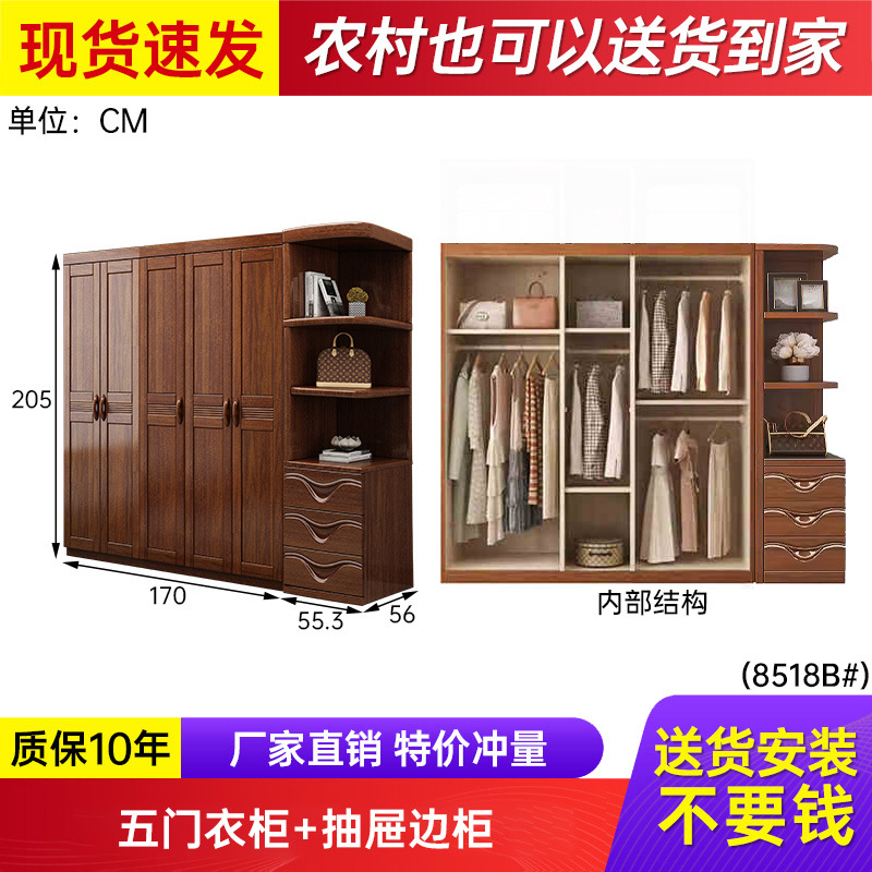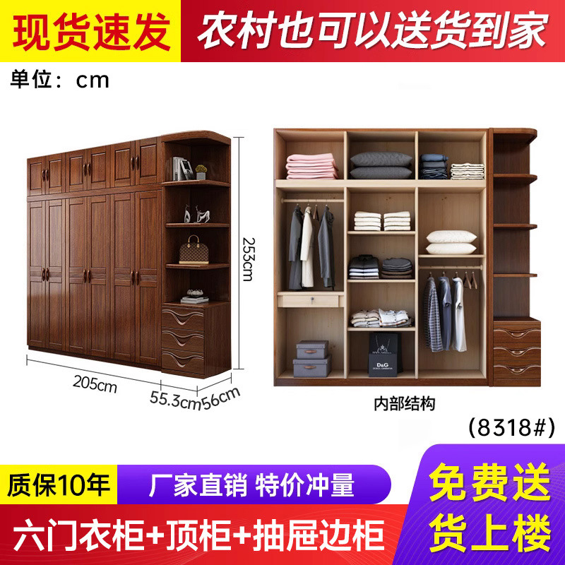 호두나무 원목 옷장 통나무 다층 대형 옷장 수납 수납 캐비닛 원목 홈 침실 경제적스토어 가기