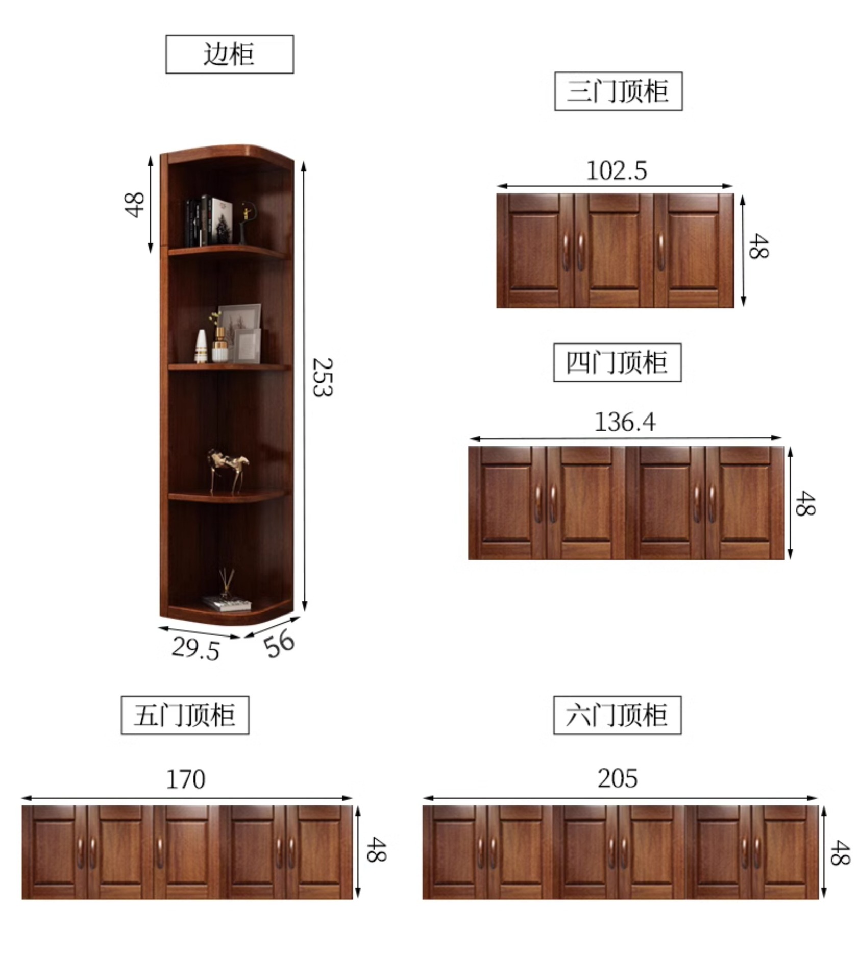 • 6도어 옷장 + 사이드 캐비닛 + 상단 캐비닛