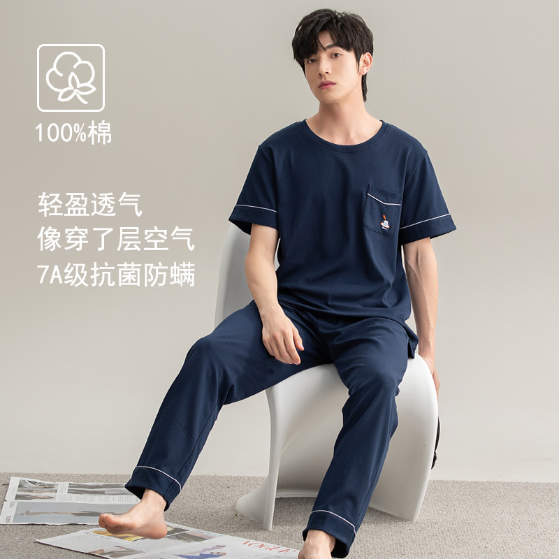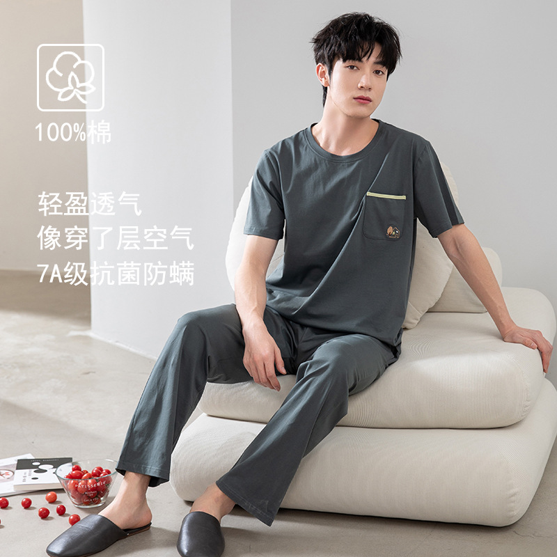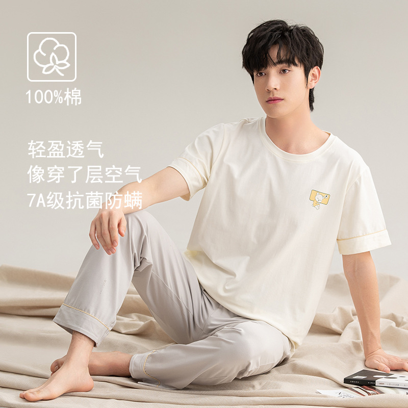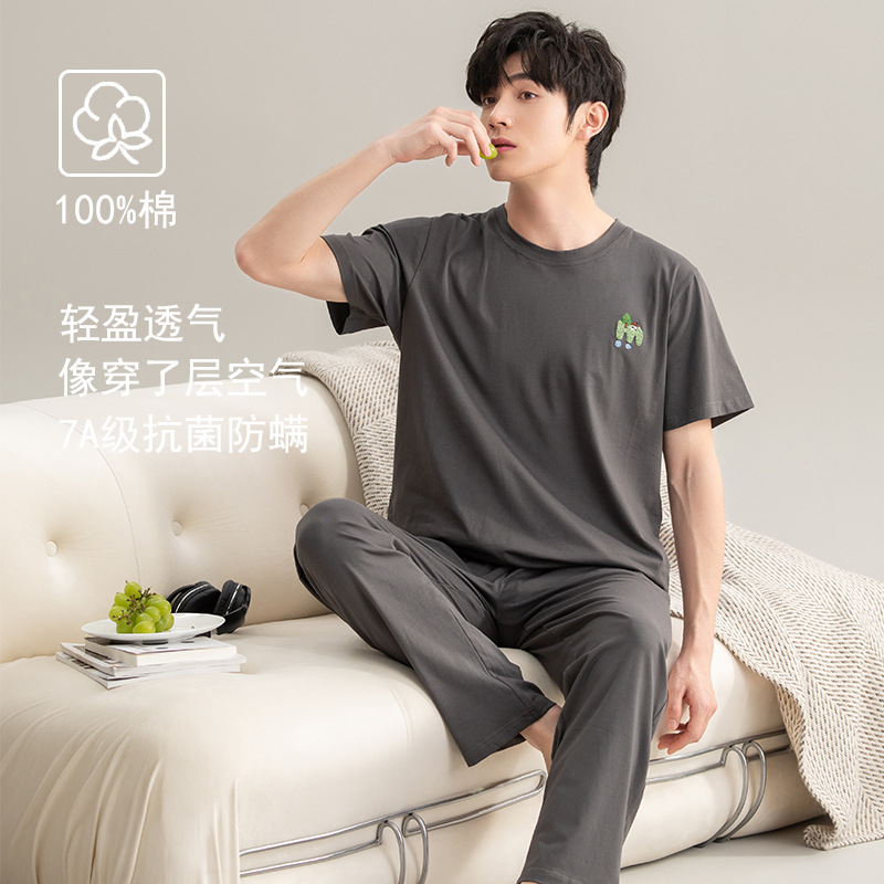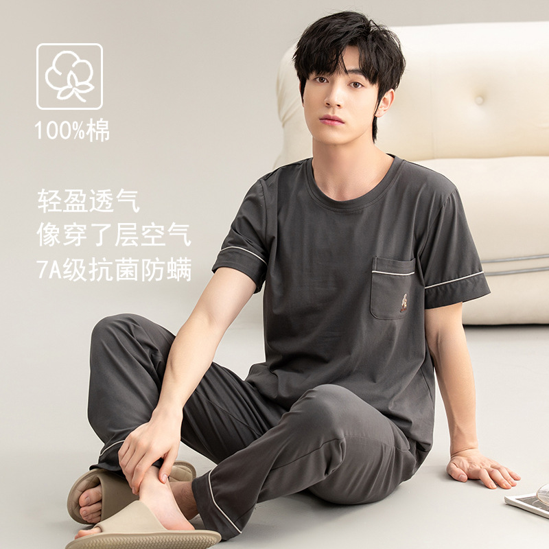 클래스 A 항균 순면 남성 잠옷 남성 여름 2025 새로운 반팔 바지 면화 가정 의류 남성 정장스토어 가기