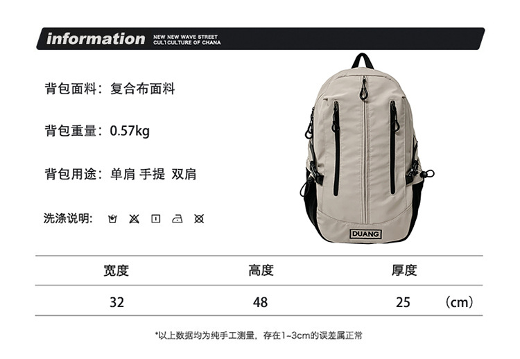 여성, 중, 고등학생을 위한 트렌디하고 쿨한 스타일의 작업복 책가방, 대용량 남성용 백팩, 캐주얼 아웃도어 스포츠 등산가방