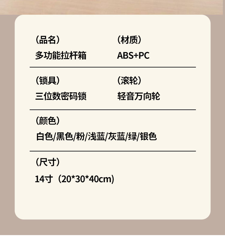 14inch 트롤리 여행가방 20×30×40 스프링 에어 캐리어 여행가방은 비행기 여행가방에 탈 수 있습니다.스토어 가기