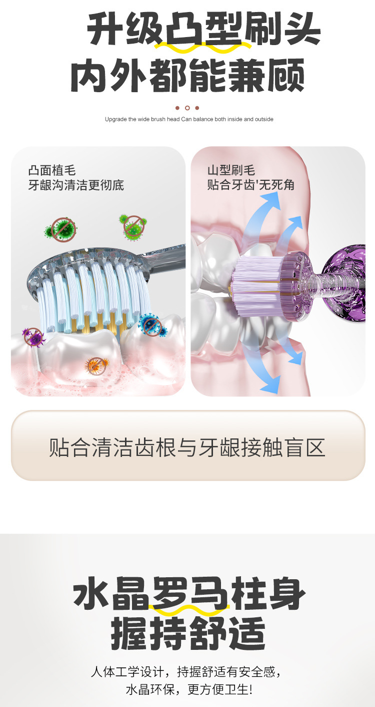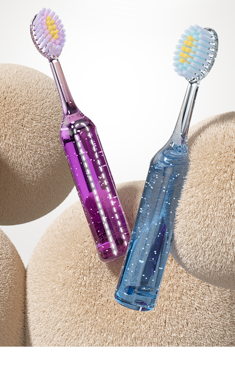 • 크리스탈 마운틴 볼록 어린이 칫솔 2팩 레드와 퍼플