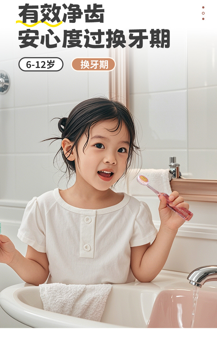 카슬리빅맥스 어린이 산형 볼록모 부드러운 칫솔 유아용 3세, 6세~12세