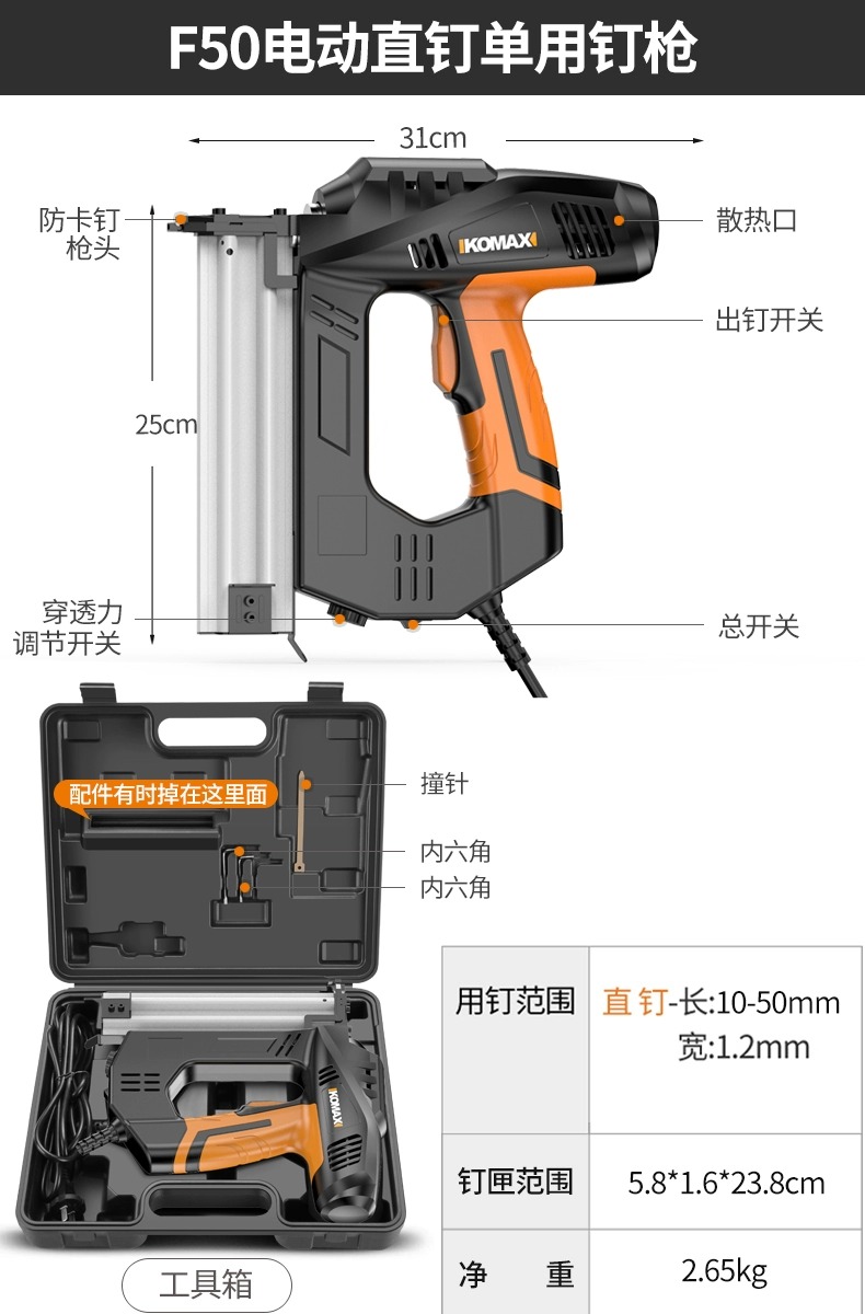 Komax 네일건 전기 네일건 강철 네일건 완전 자동 네일건 목공 에어 네일건스토어 가기