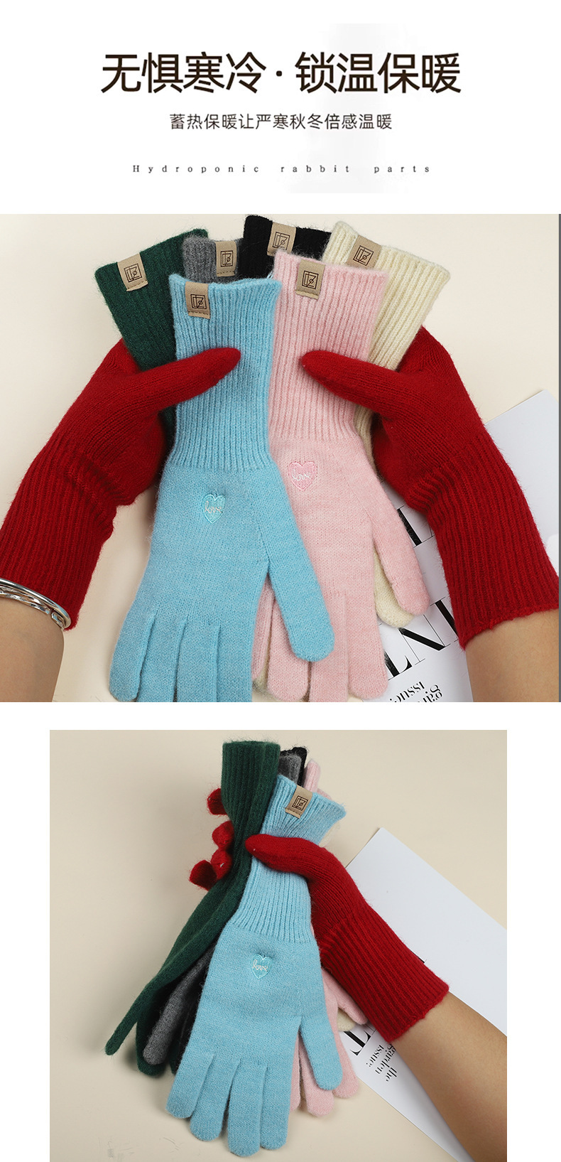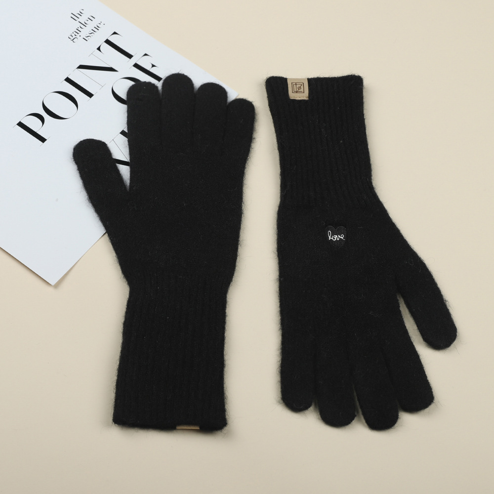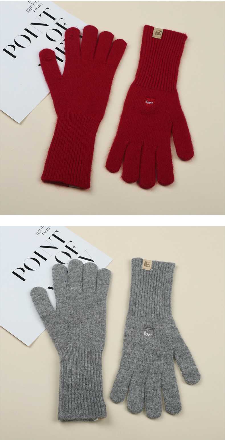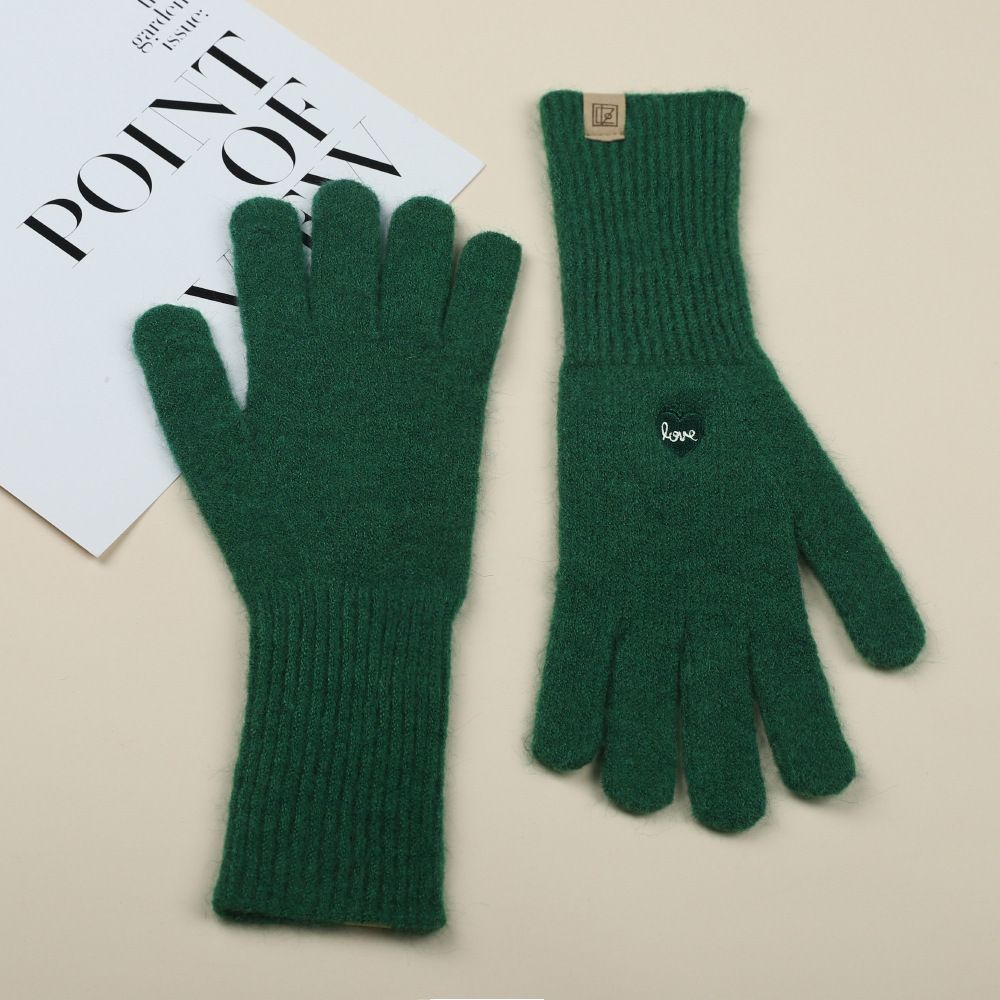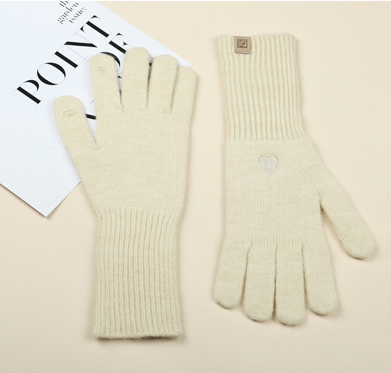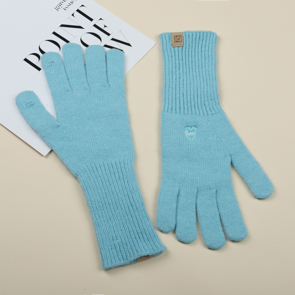 가을 겨울 여성용 한국식 자수 리본 핑거리스 터치 스크린 니트 울 장갑, 따뜻한 사이클링 및 방한 손가락스토어 가기