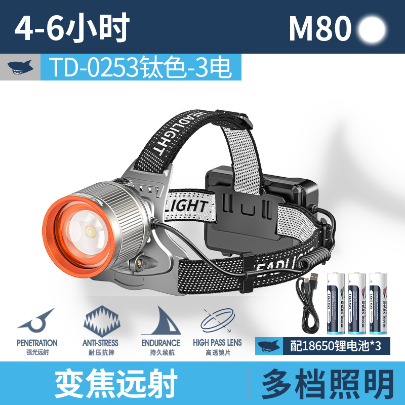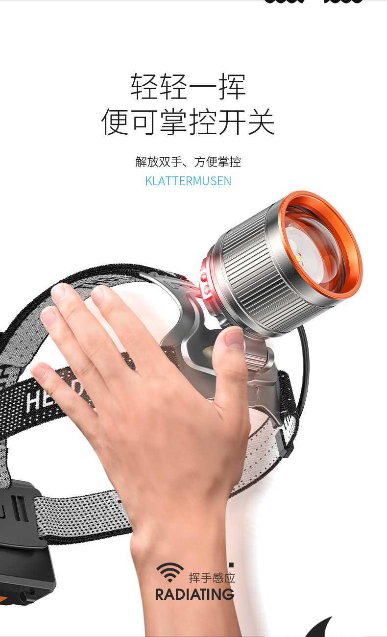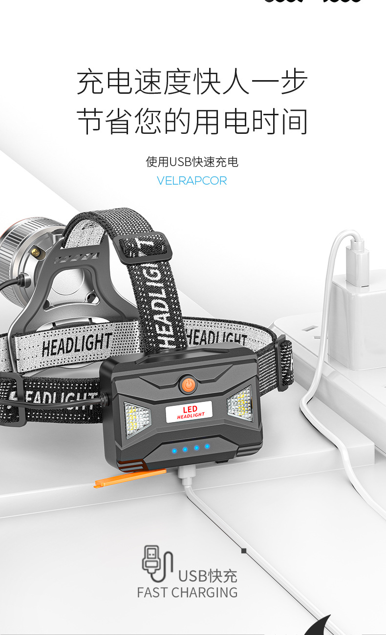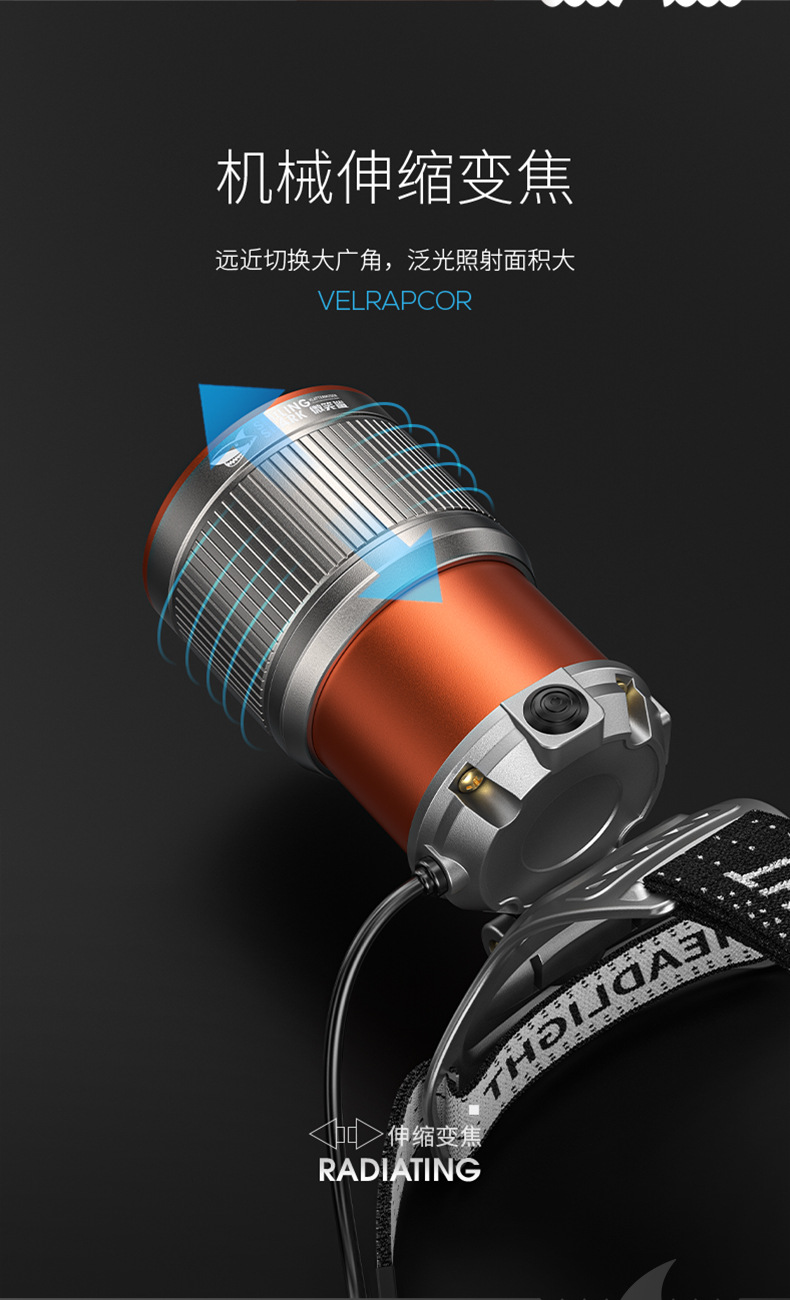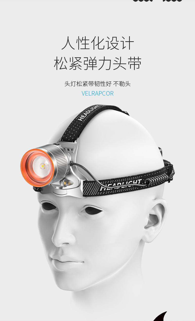 국경 간 신제품 텔레스코픽 줌 장거리 강한 빛 헤드 라이트 USB 충전식 흔들기 유도 헤드 장착형 조명 야외 조명