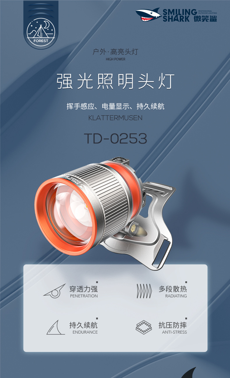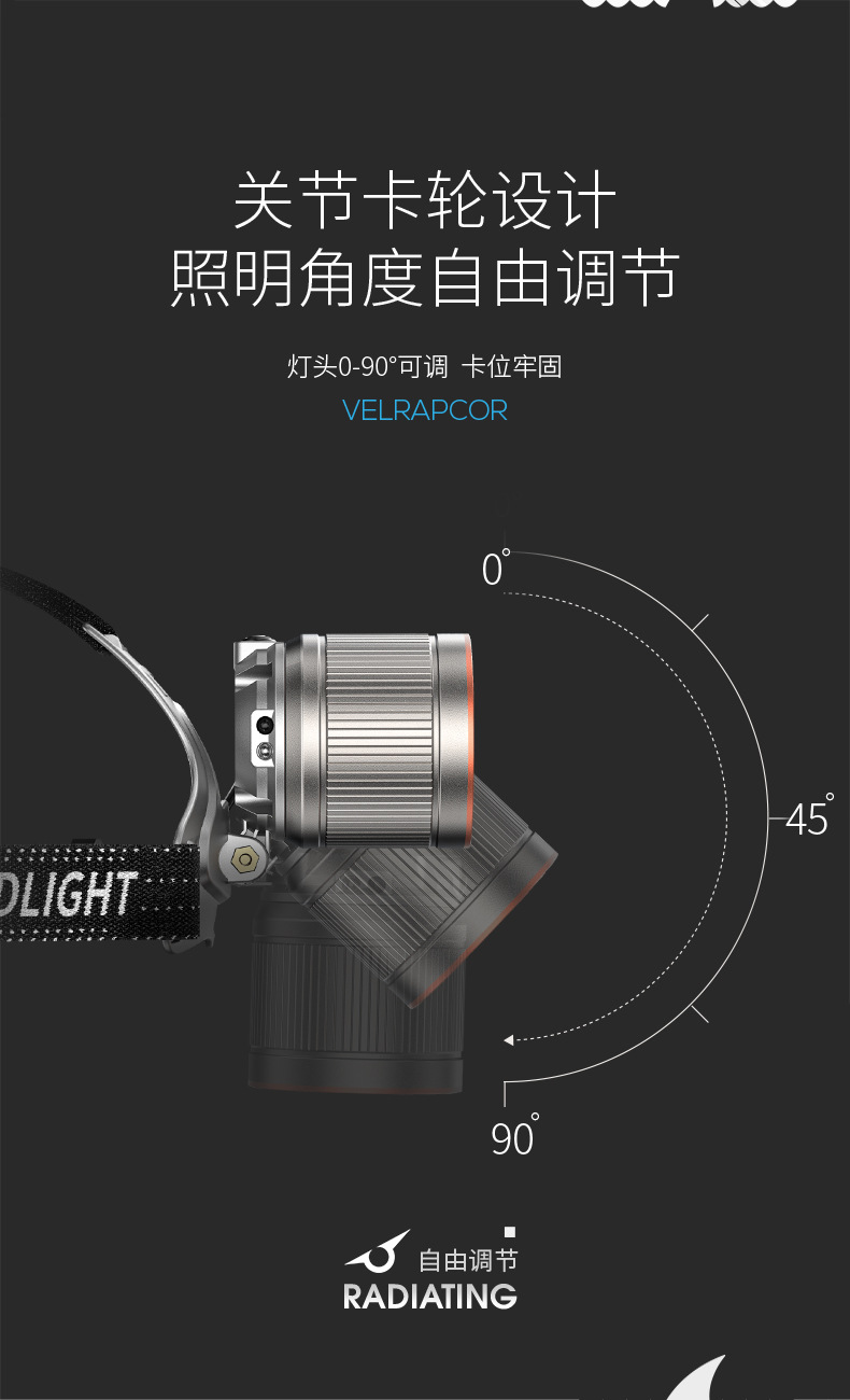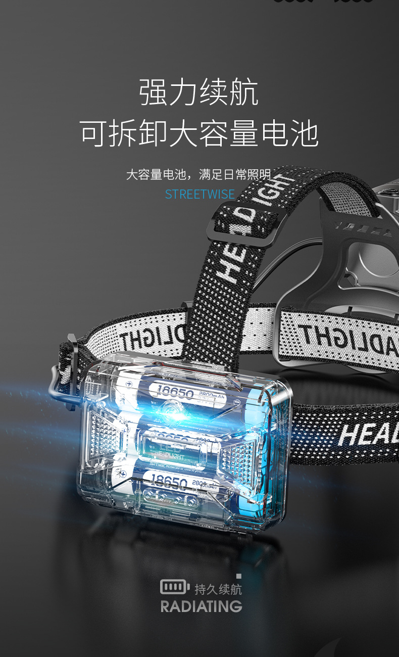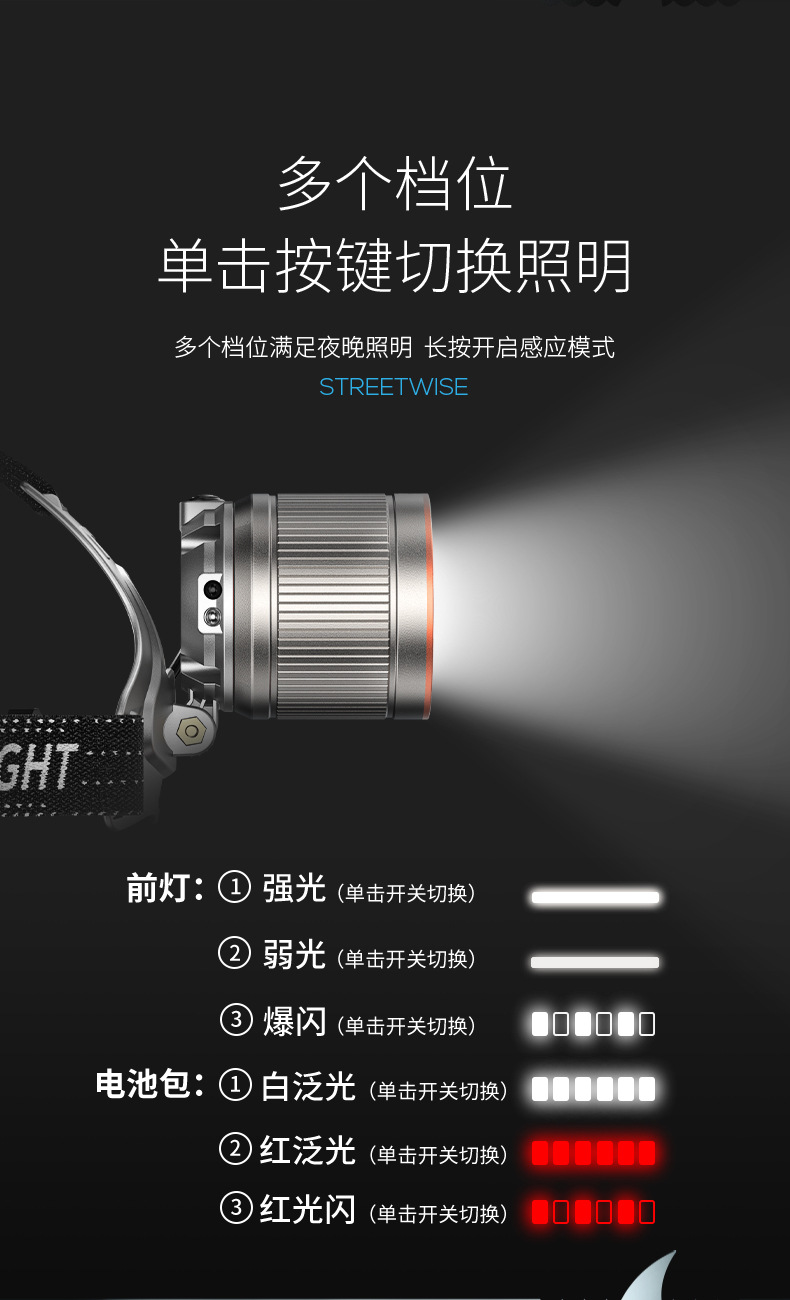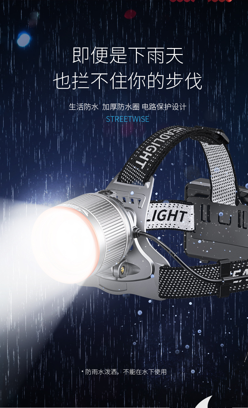 국경 간 신제품 텔레스코픽 줌 장거리 강한 빛 헤드 라이트 USB 충전식 흔들기 유도 헤드 장착형 조명 야외 조명