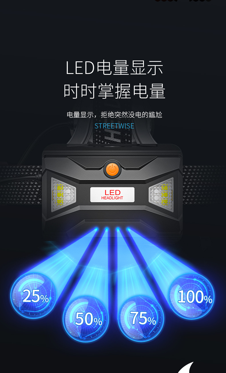 국경 간 신제품 텔레스코픽 줌 장거리 강한 빛 헤드 라이트 USB 충전식 흔들기 유도 헤드 장착형 조명 야외 조명스토어 가기