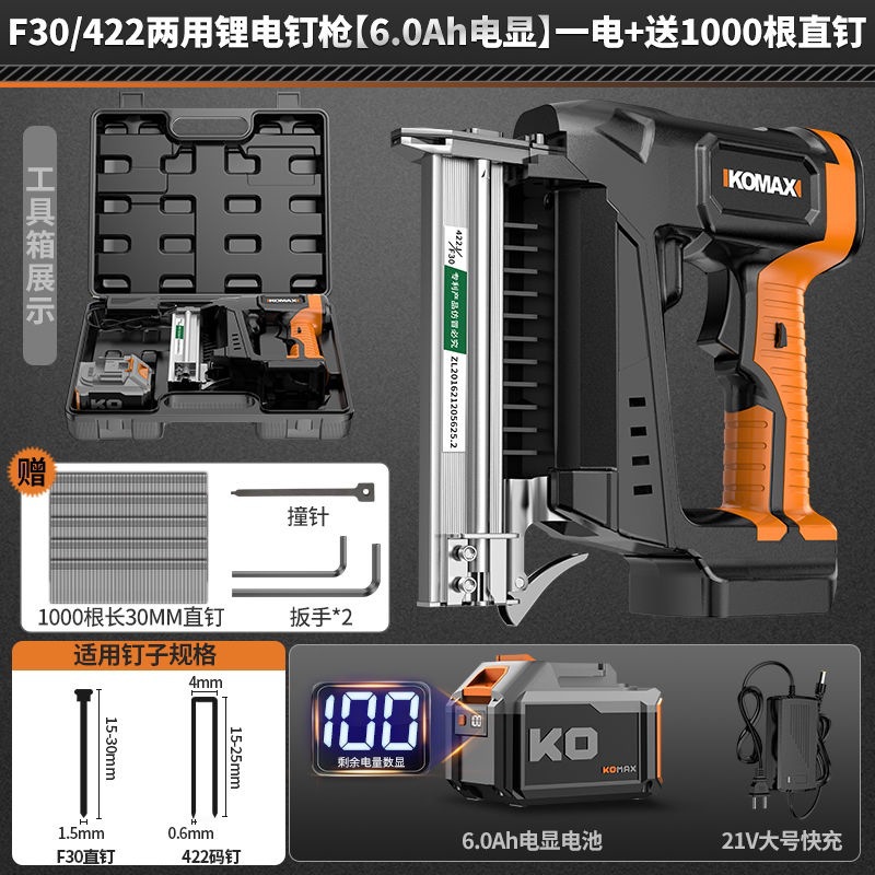 • F30/422 리튬 전기 네일건 6.0 전기 디스플레이 배터리 2개_직선 못 1000개