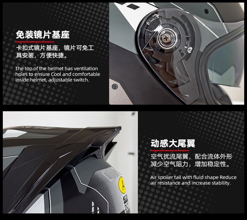 사계절 남녀공용 신형 오토바이 헬멧, 대형 테일 윙 오토바이 더블 미러 고스트 페이스 풀 헬멧 3C/DOT 제조업체스토어 가기