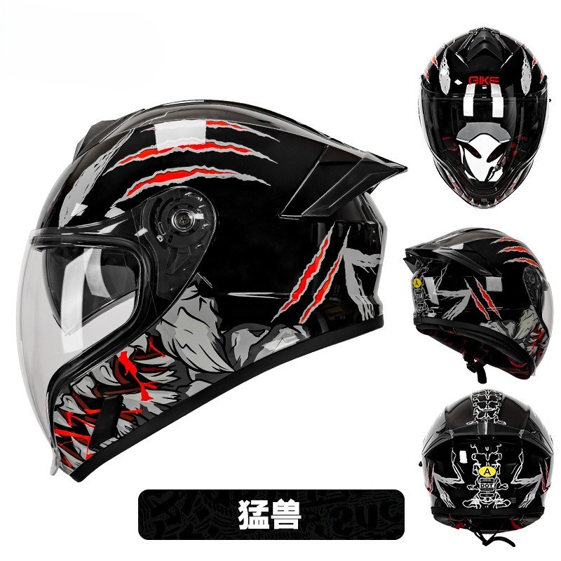 사계절 남녀공용 신형 오토바이 헬멧, 대형 테일 윙 오토바이 더블 미러 고스트 페이스 풀 헬멧 3C/DOT 제조업체