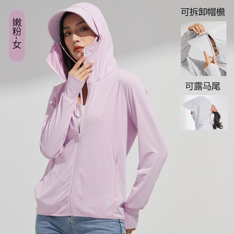 Jiao Mo와 같은 스타일의 여름 얼음 실크 자외선 차단 의류 여성용 여름 탈착식 챙 자외선 방지 낚시 의류 재킷