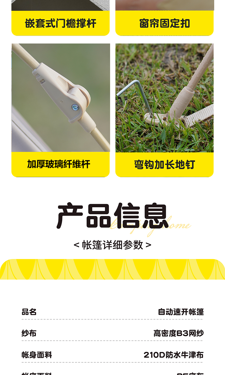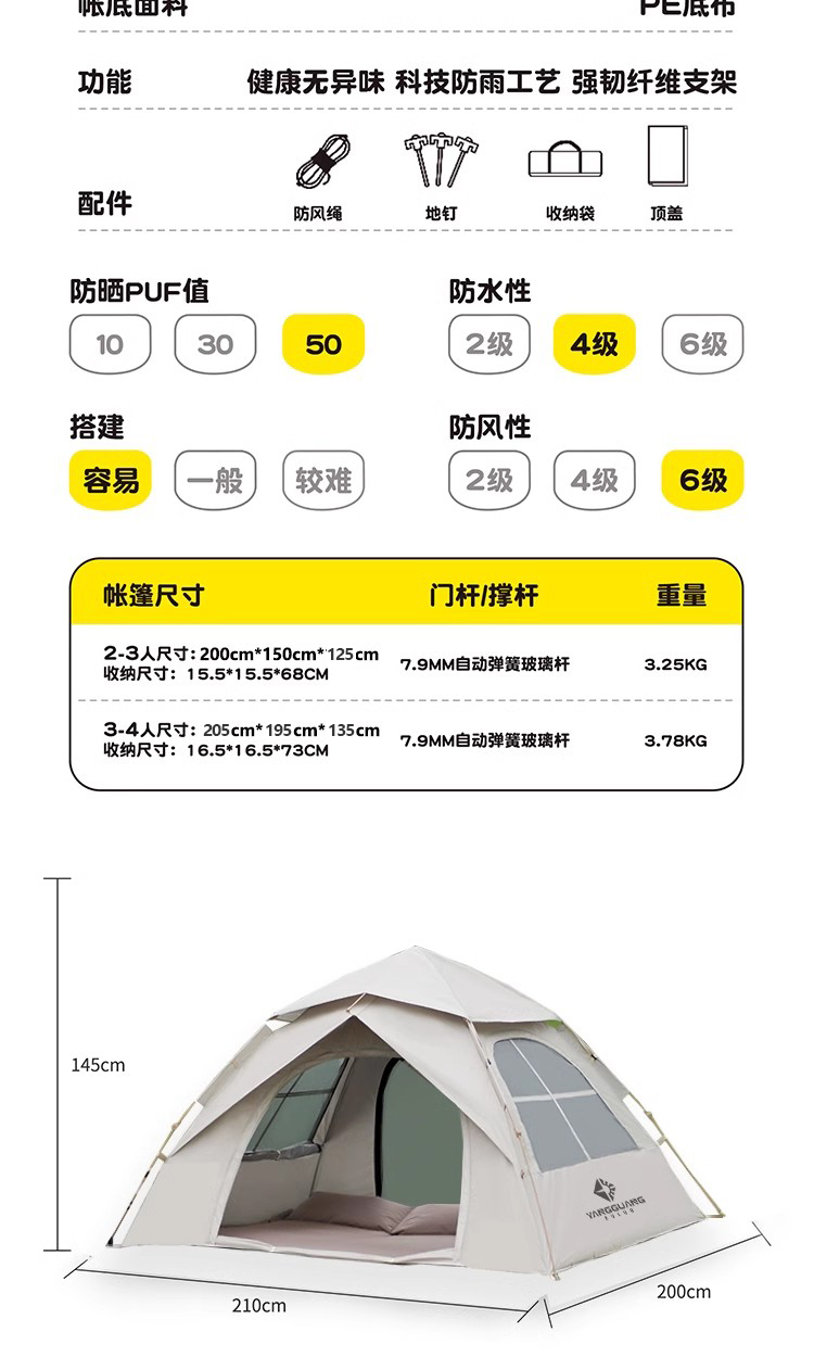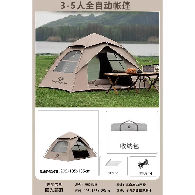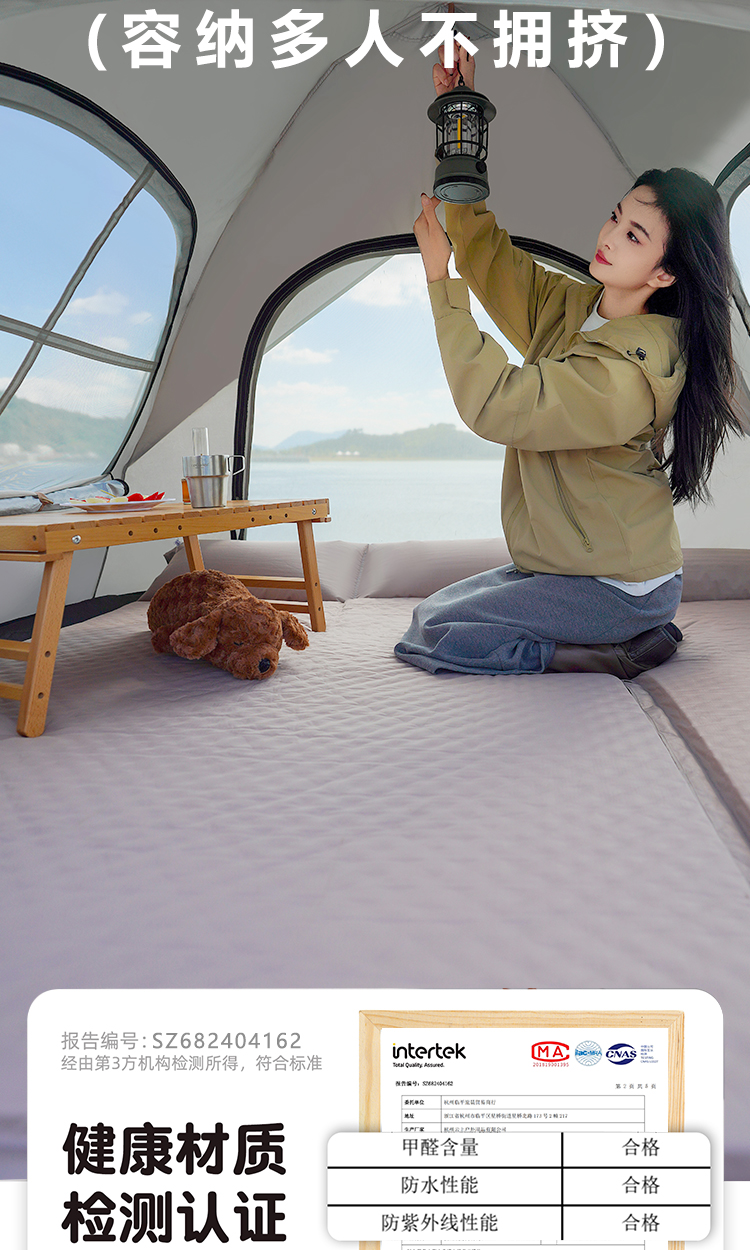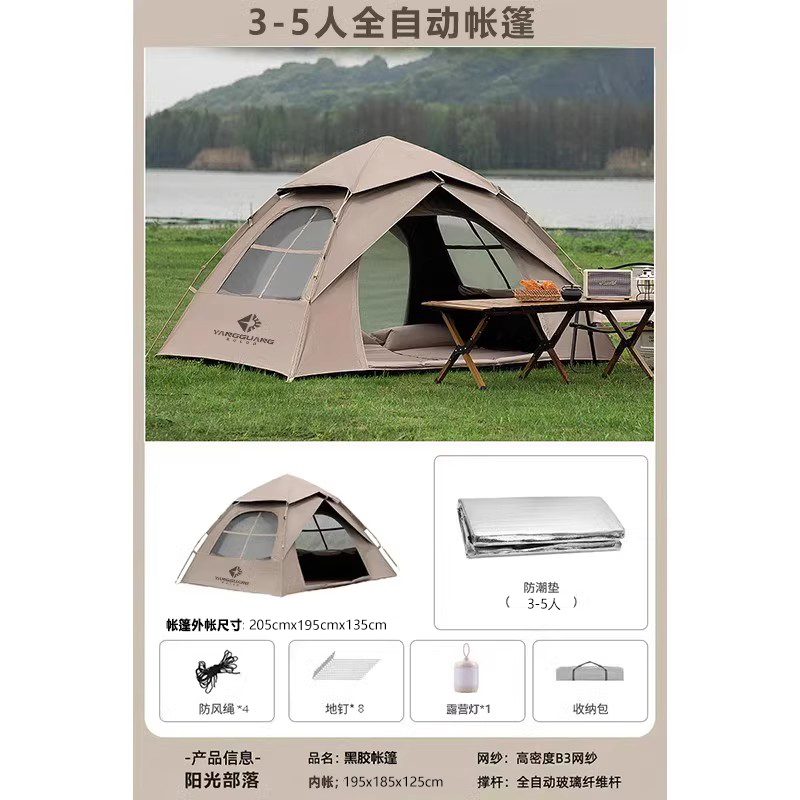 • ₪加厚黑胶升级款【两门十字窗】3-5人+防潮垫+露营灯