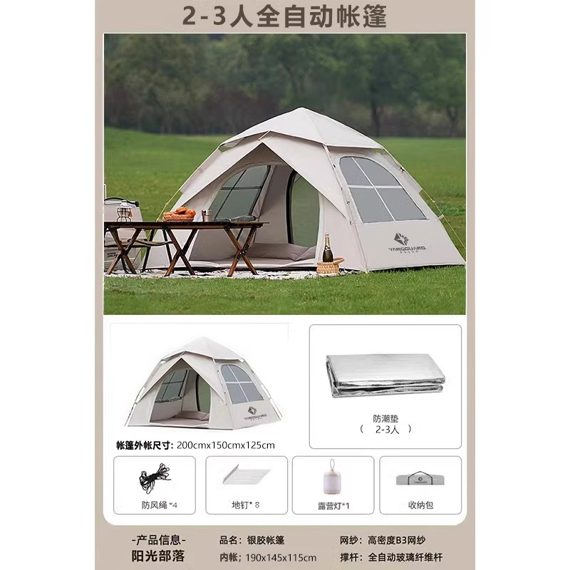 • ₪加厚银胶升级款【两门十字窗】2-3人+防潮垫+露营灯