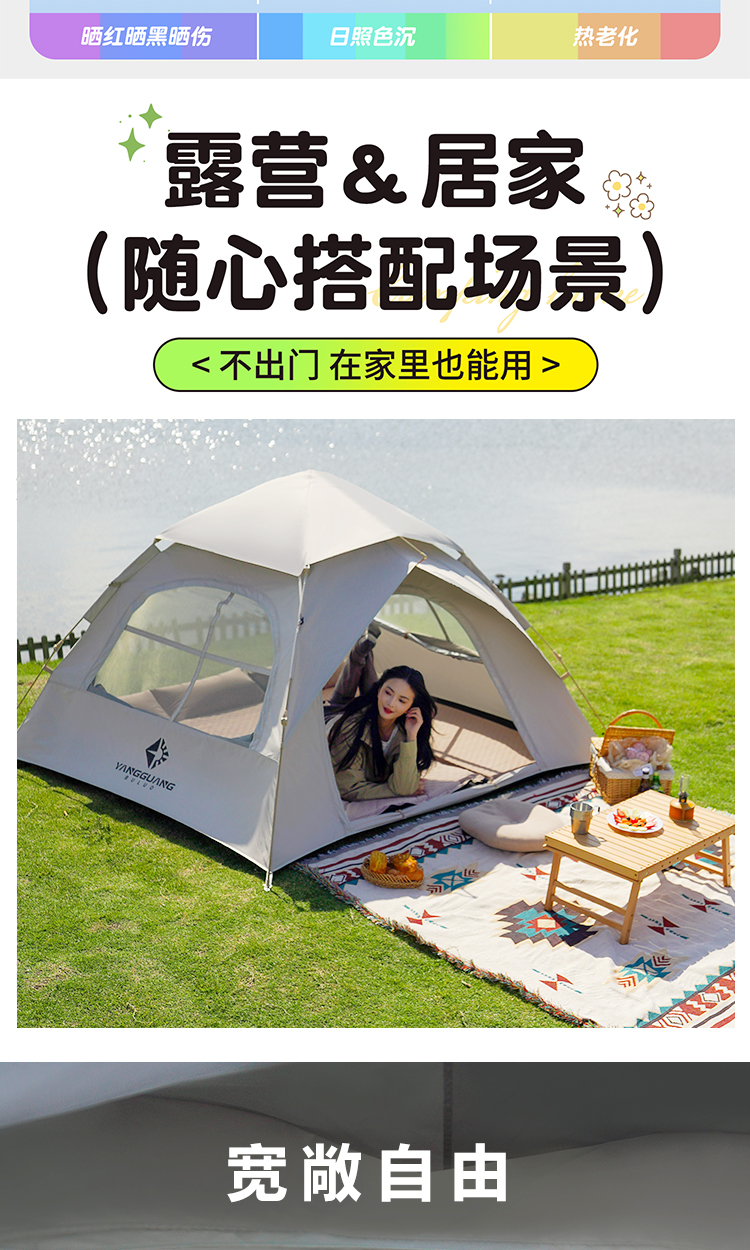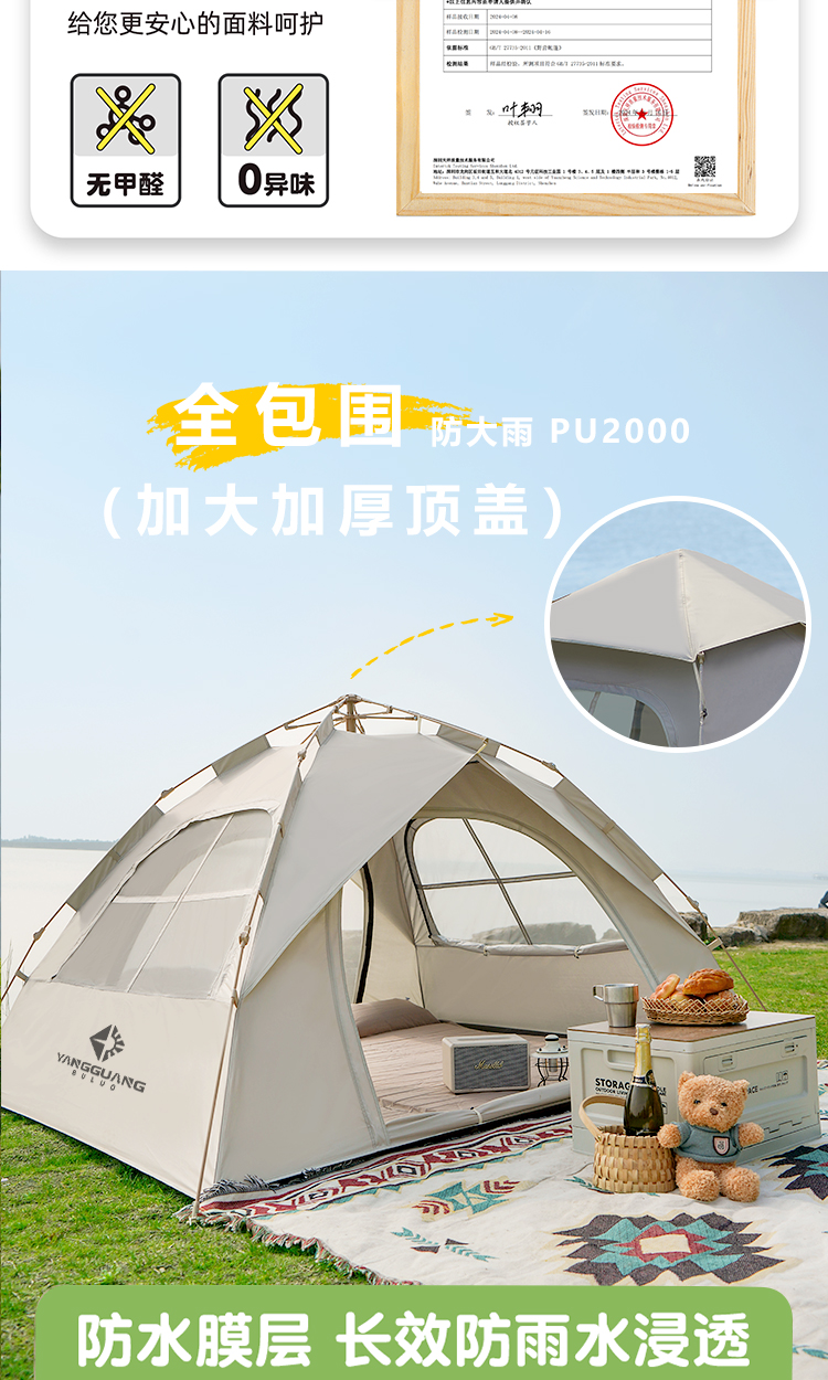 야외 캠핑 및 밤새 캠핑을 위한 캠핑 텐트, 휴대용 접이식, 완전 자동, 빠른 개방, 방수, 두꺼운 야외