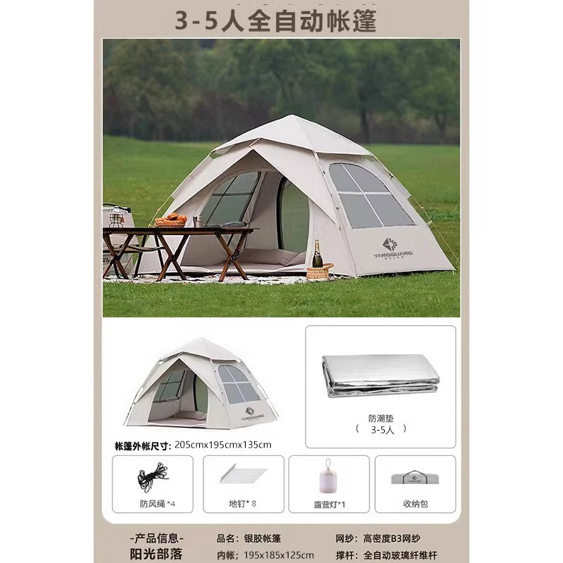 • ₪加厚银胶升级款【两门十字窗】3-5人+防潮垫+露营灯