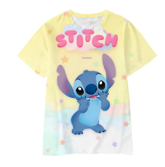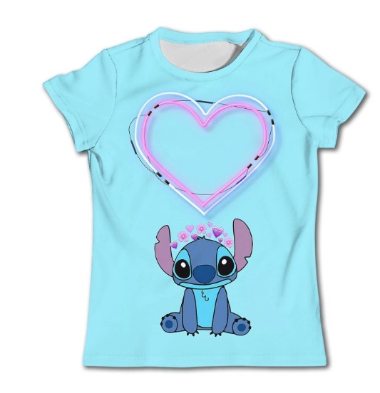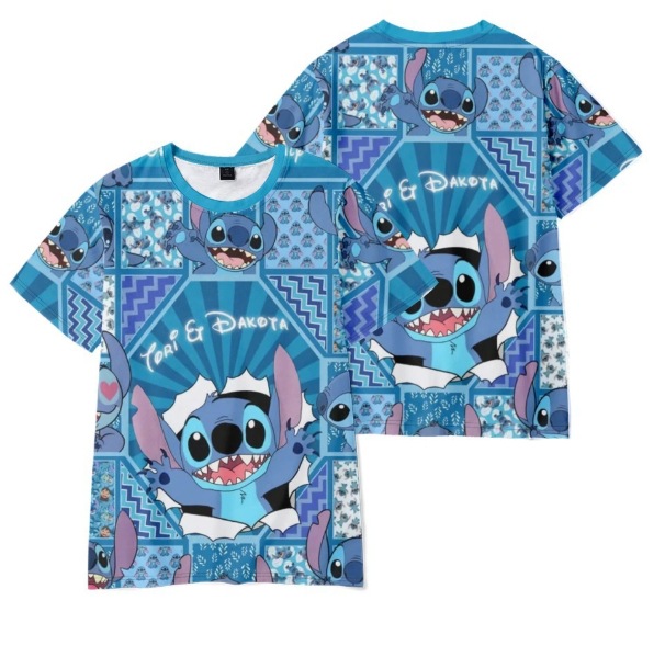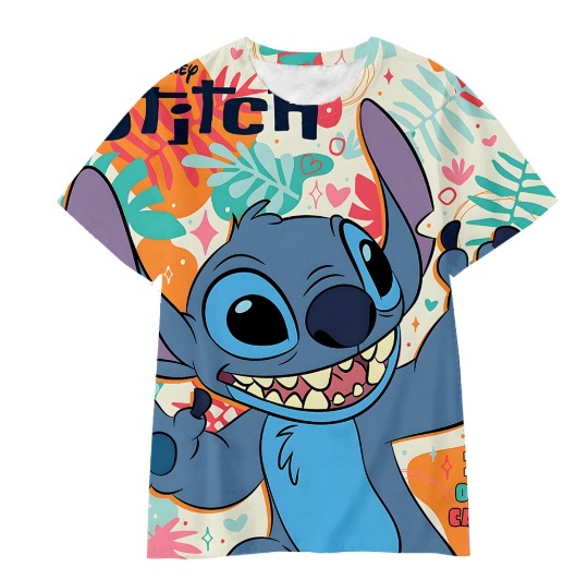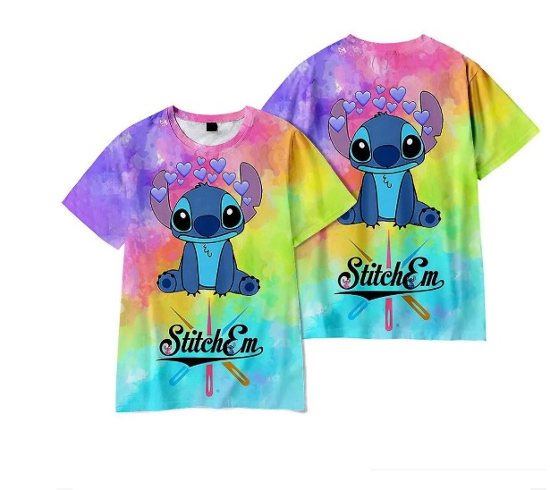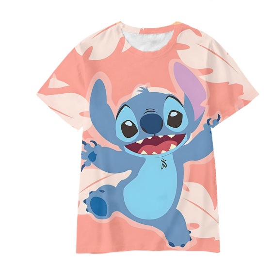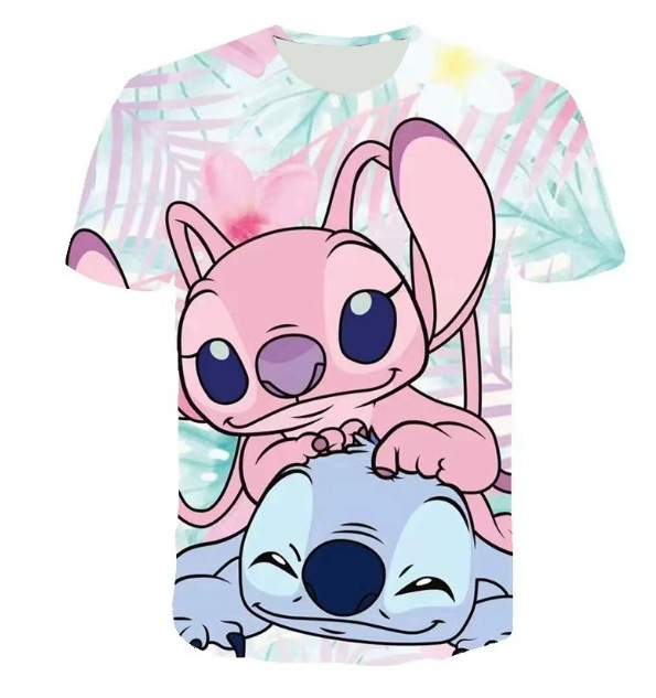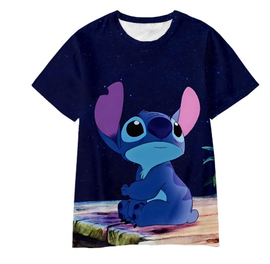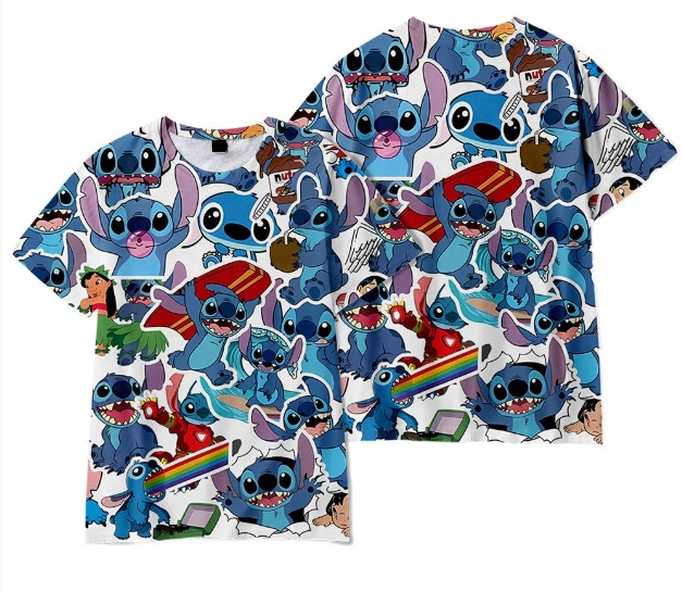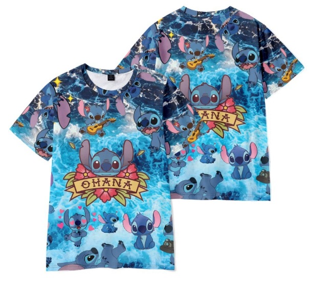 3D 새로운 만화 스티치 디지털 인쇄 반팔 티셔츠 귀여운 디지털 인쇄 라운드 넥 티셔츠스토어 가기