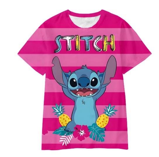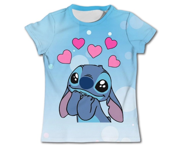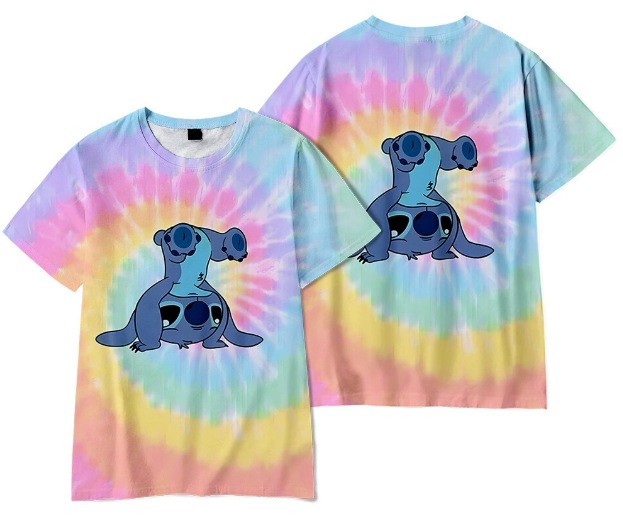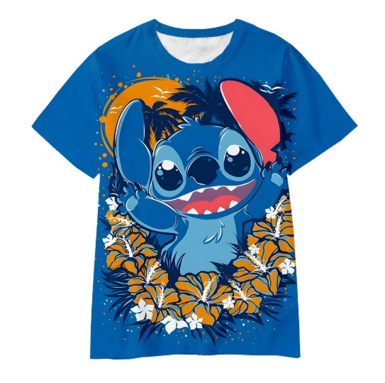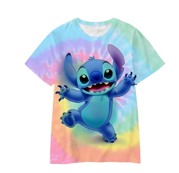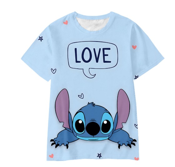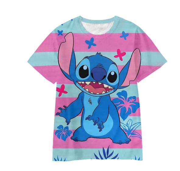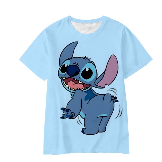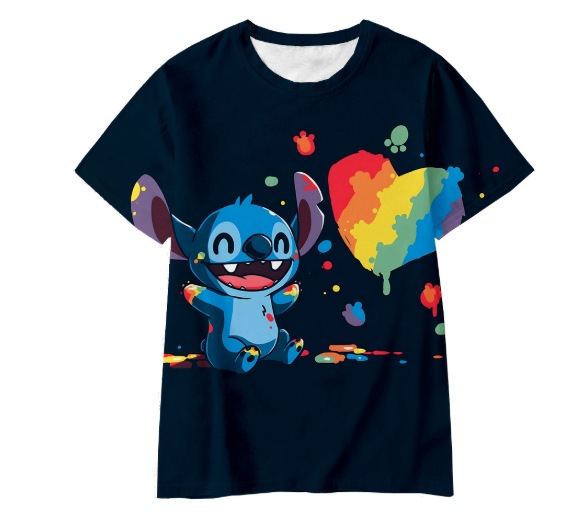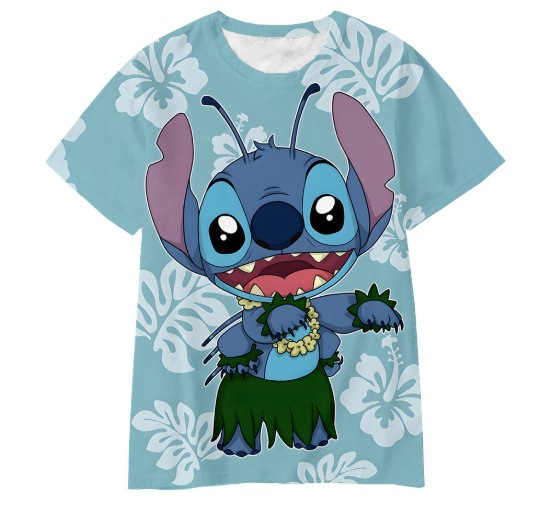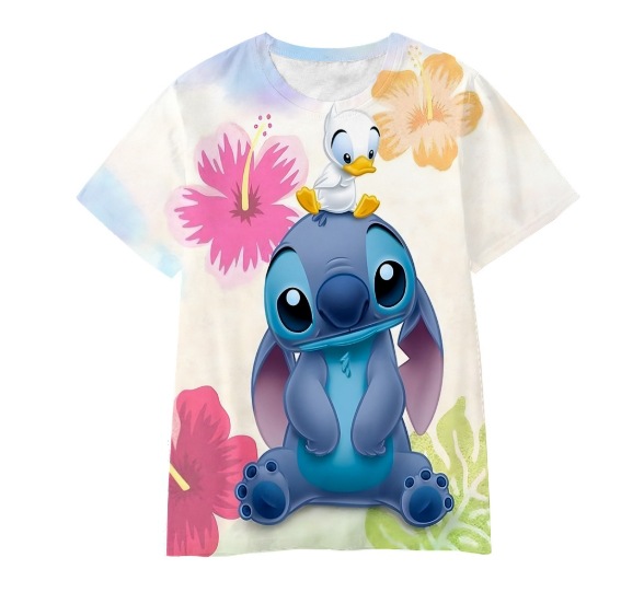 3D 새로운 만화 스티치 디지털 인쇄 반팔 티셔츠 귀여운 디지털 인쇄 라운드 넥 티셔츠스토어 가기