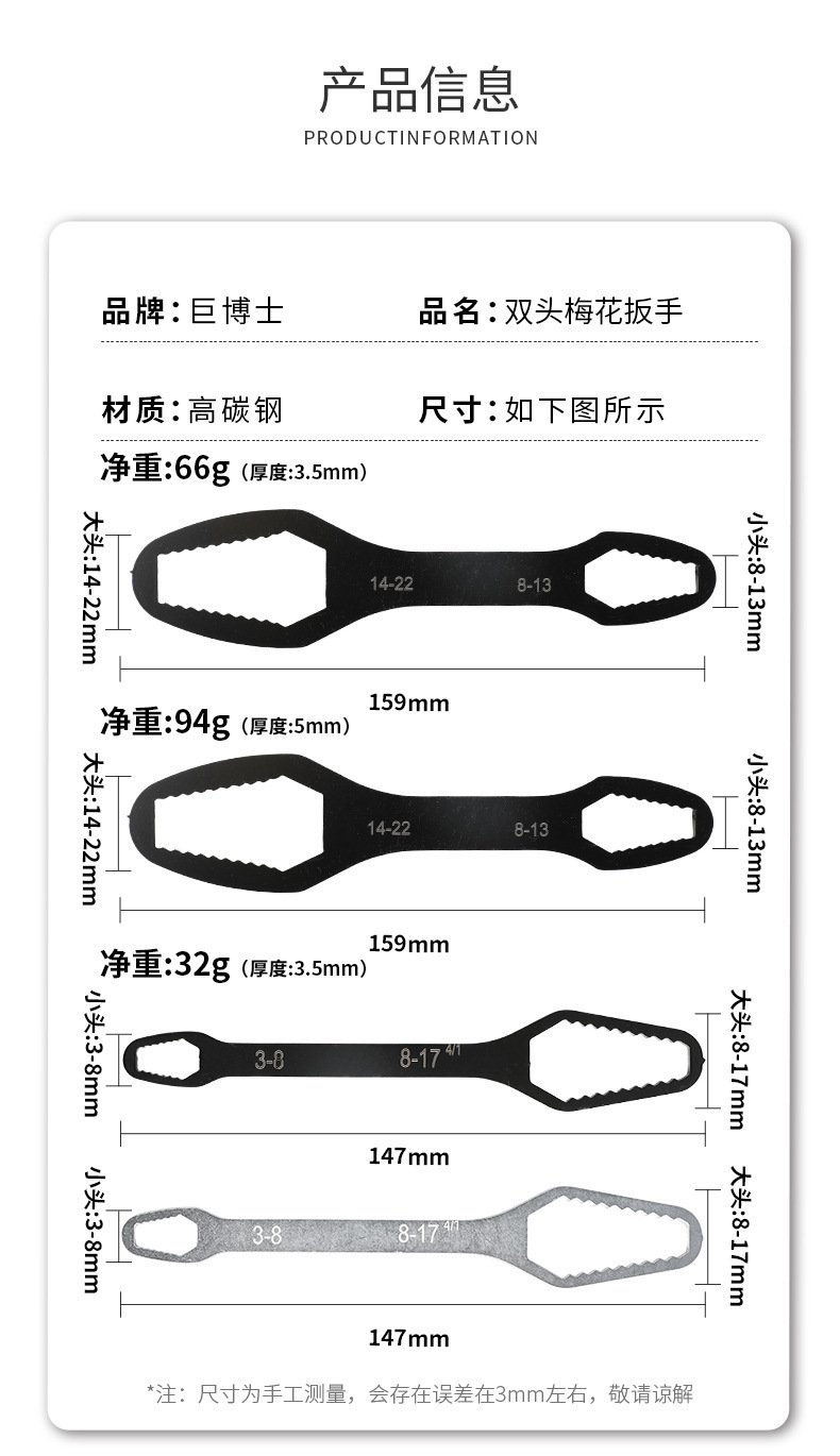 다양한 직경의 나사와 너트를 조이기 위한 다기능 양방향 별렌치 8-22mm 육각 양방향 렌치스토어 가기