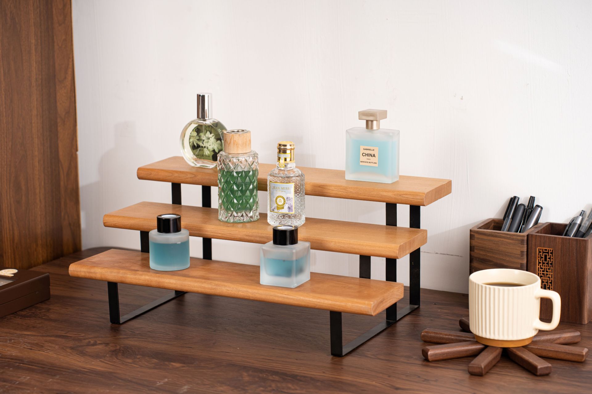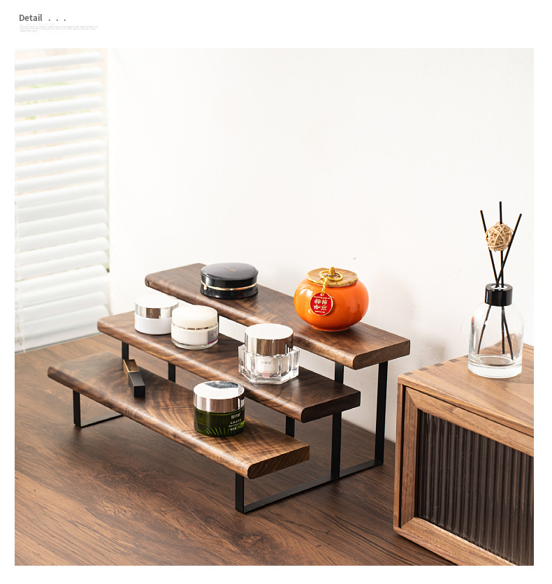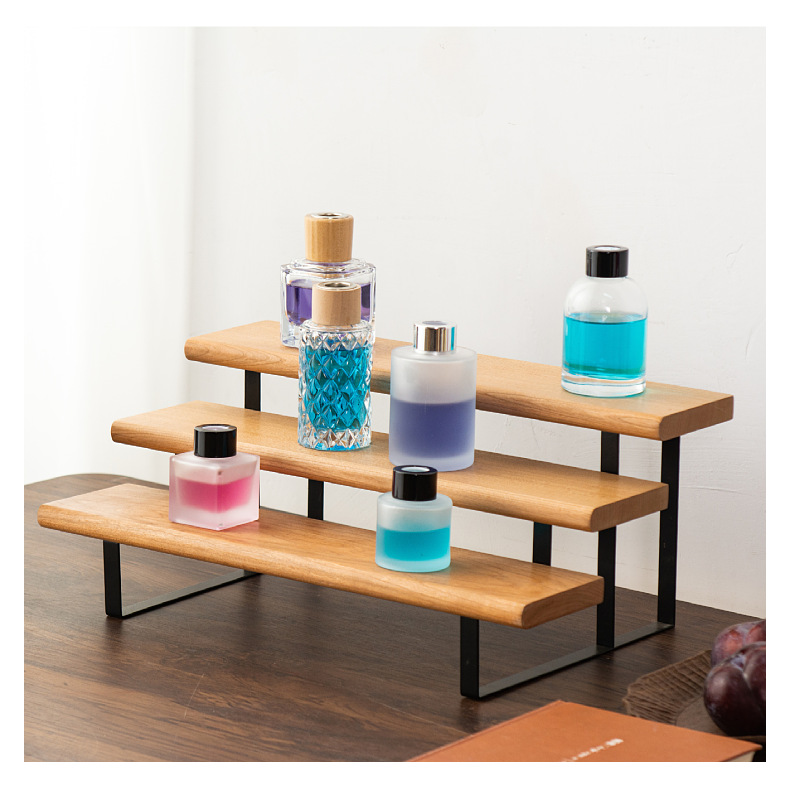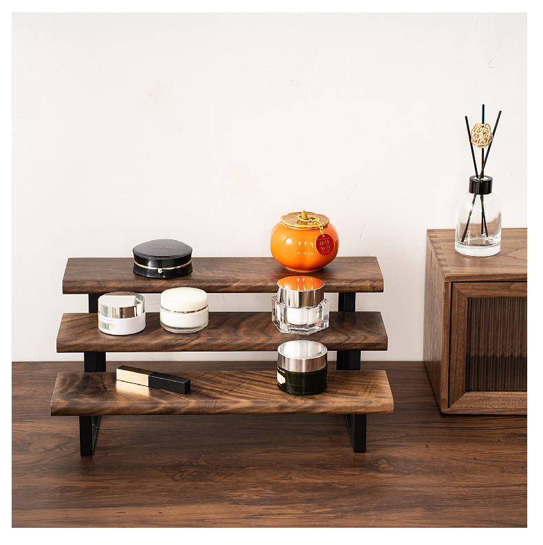 향수 디스플레이 랙 단단한 나무 다층 스토리지 랙 레스토랑 조미료 병 스토리지 랙 검은 호두 색상 데스크탑
