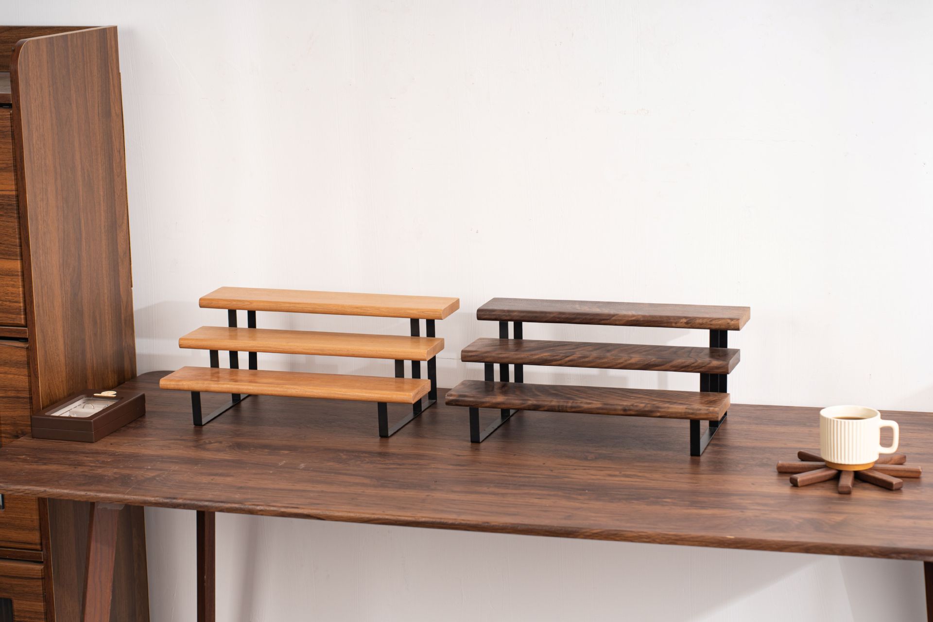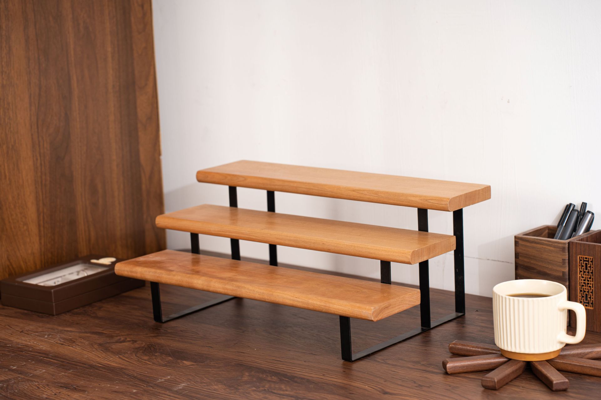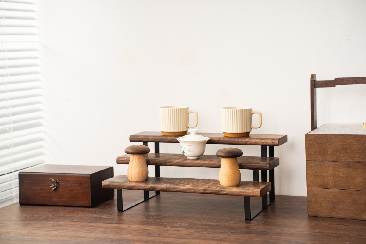 향수 디스플레이 랙 단단한 나무 다층 스토리지 랙 레스토랑 조미료 병 스토리지 랙 검은 호두 색상 데스크탑