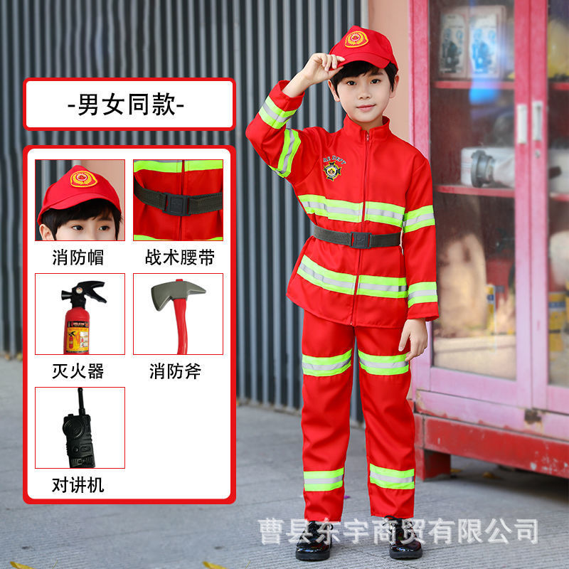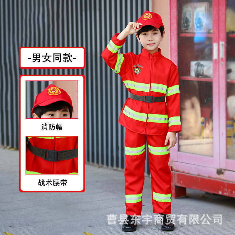 새로운 어린이 소방관 직업 체험복 유치원 소방관 운동회 역할놀이 의상