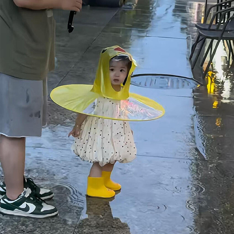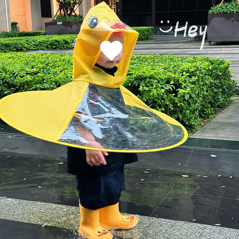 작은 노란색 오리 UFO 비옷 어린이 망토 우산 모자 만화 유치원 아기 우산 소녀를위한 결합 된 비옷스토어 가기
