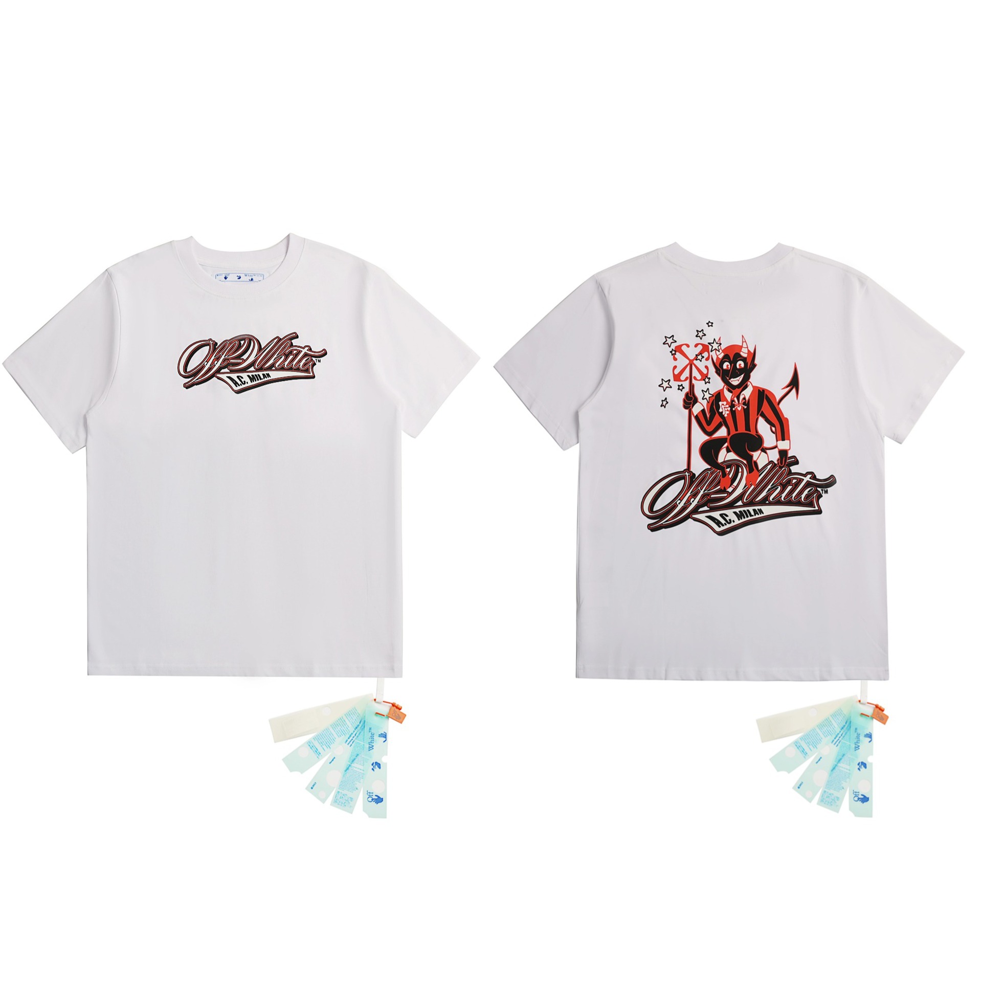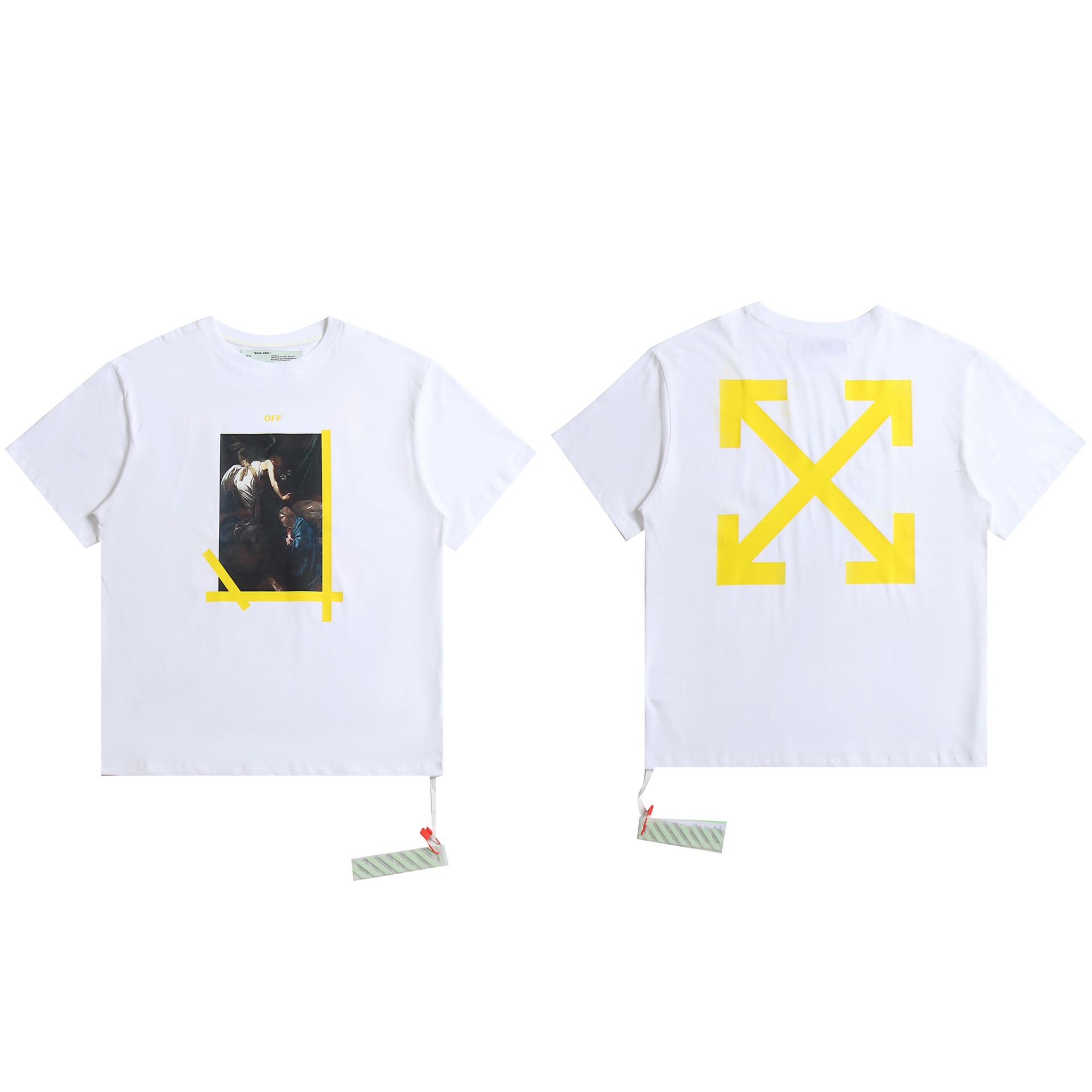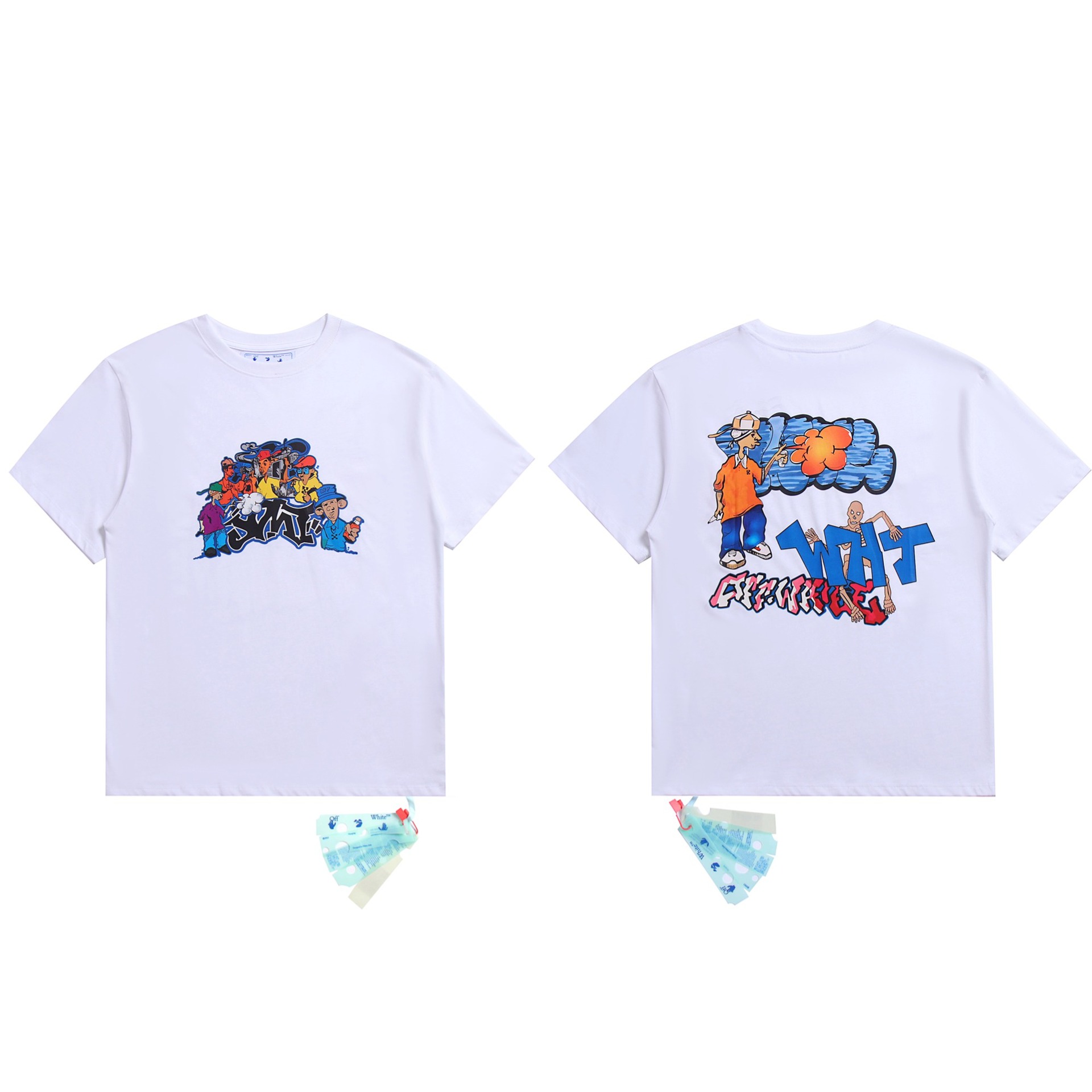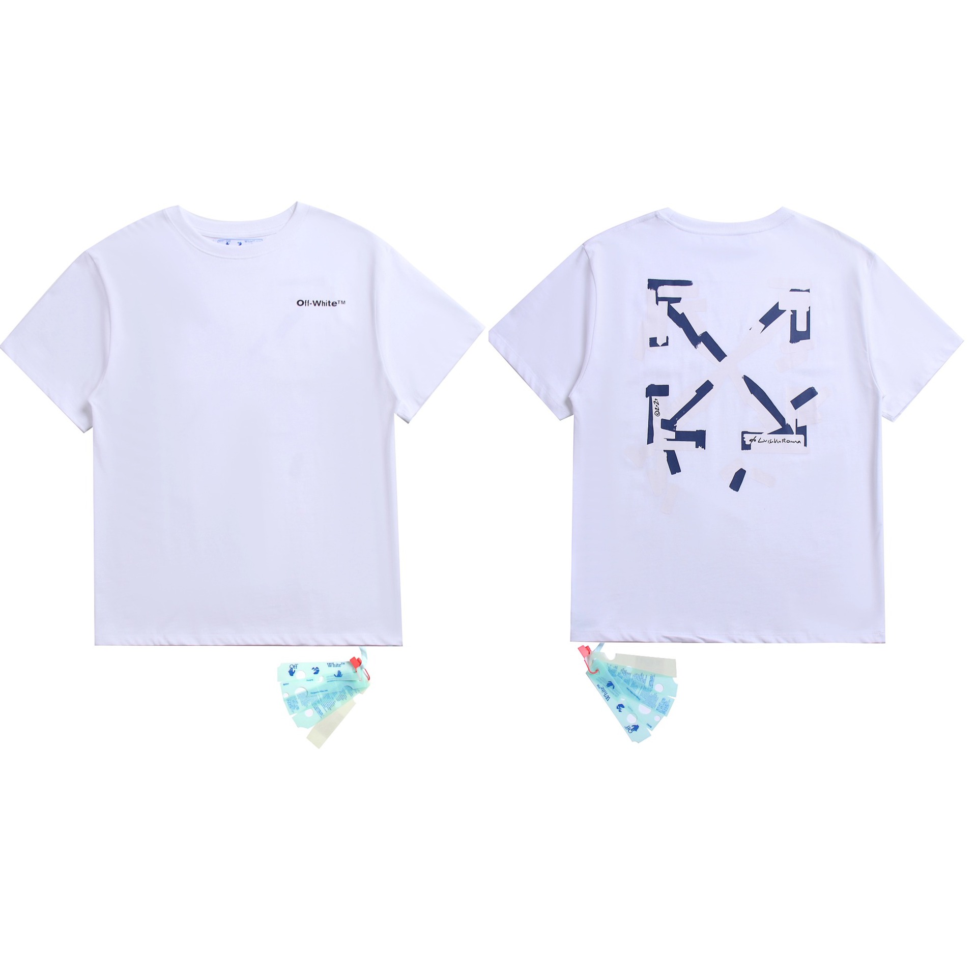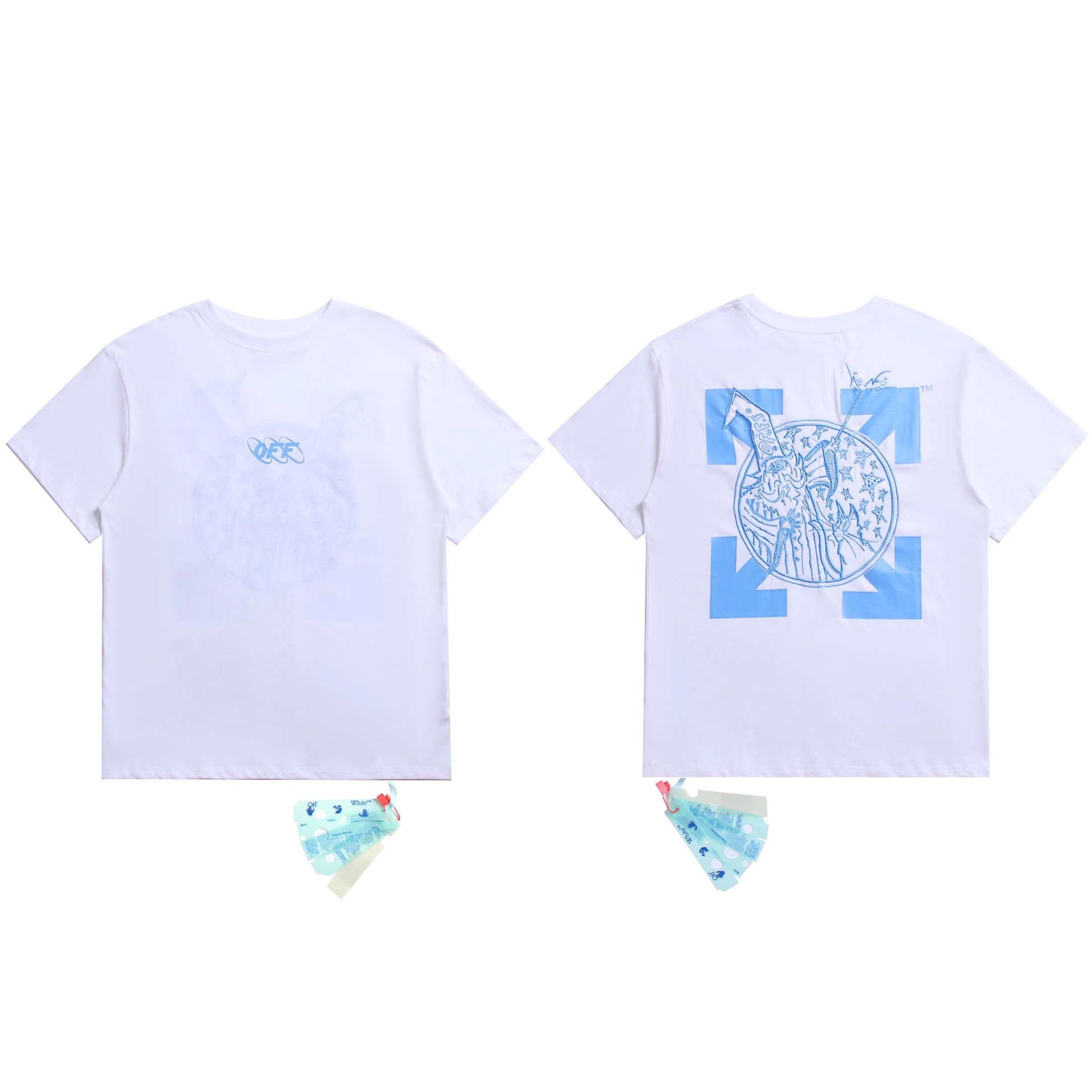 고품질 OW 자수 달 모양 배색 화살표 패턴 라운드넥 풀오버 반팔 남녀공용 라지 사이즈스토어 가기