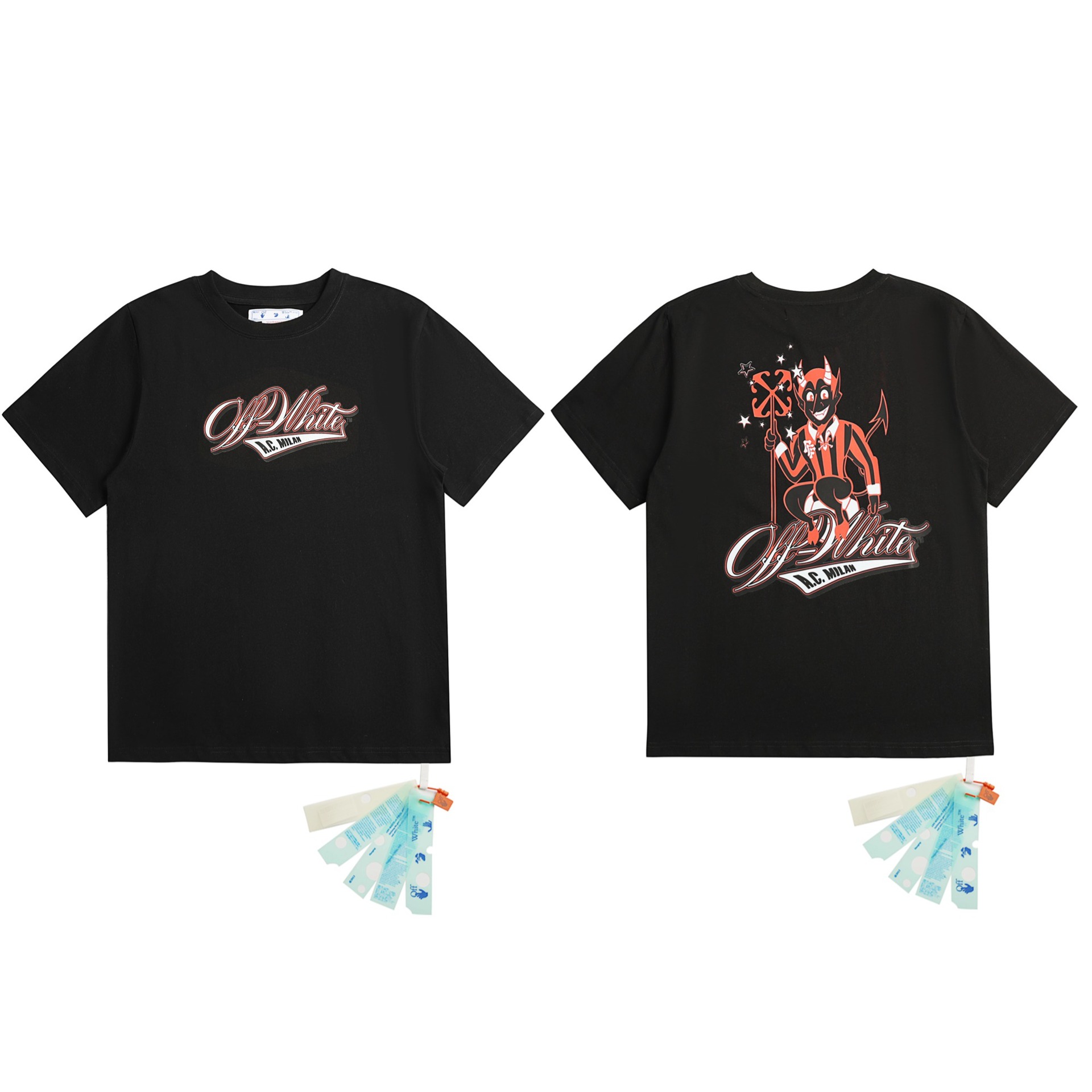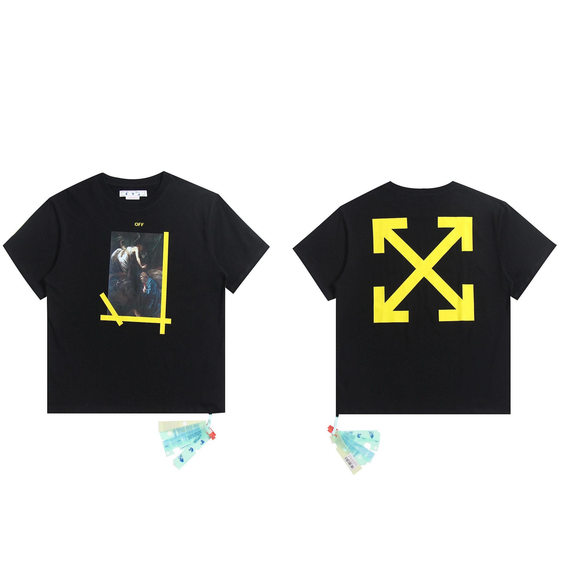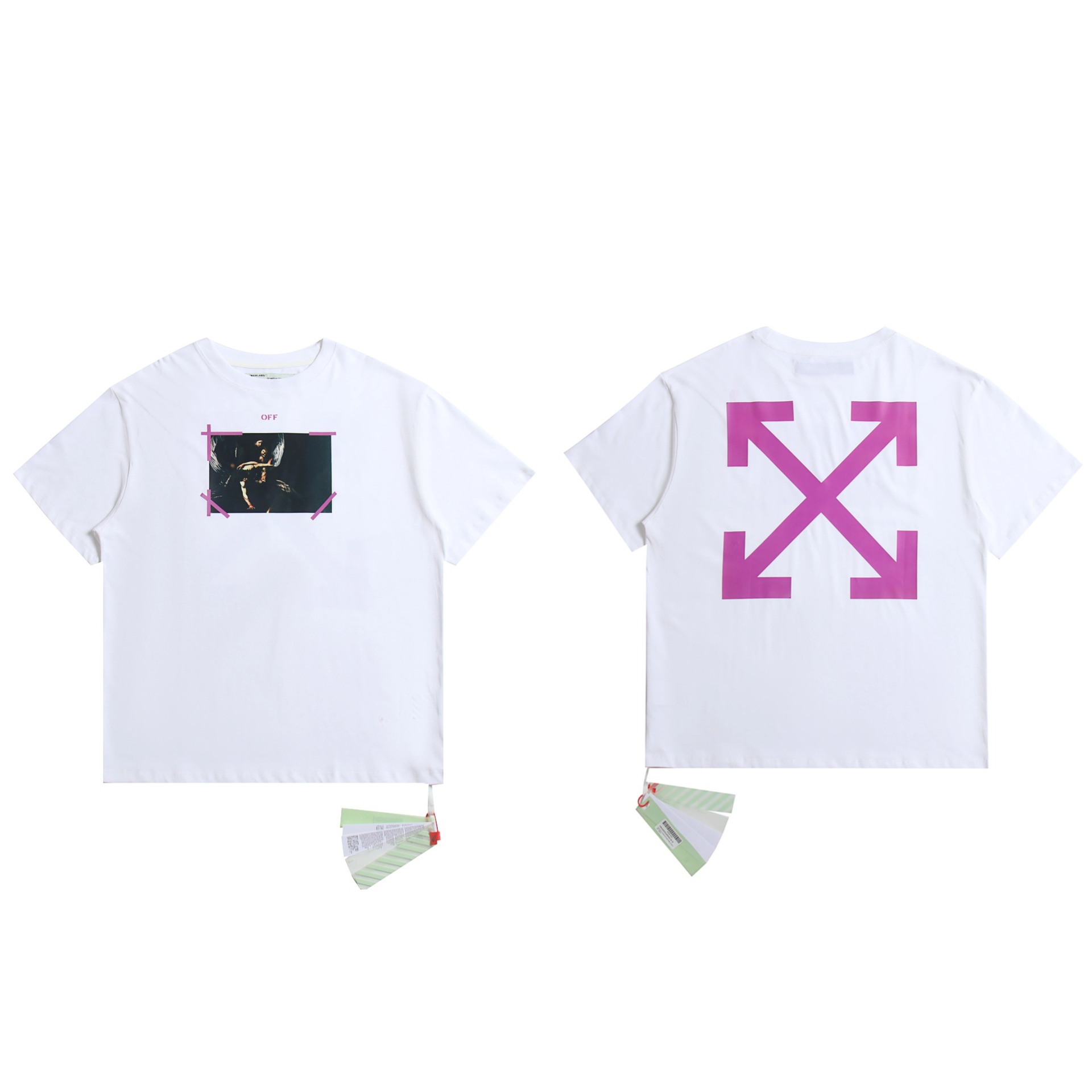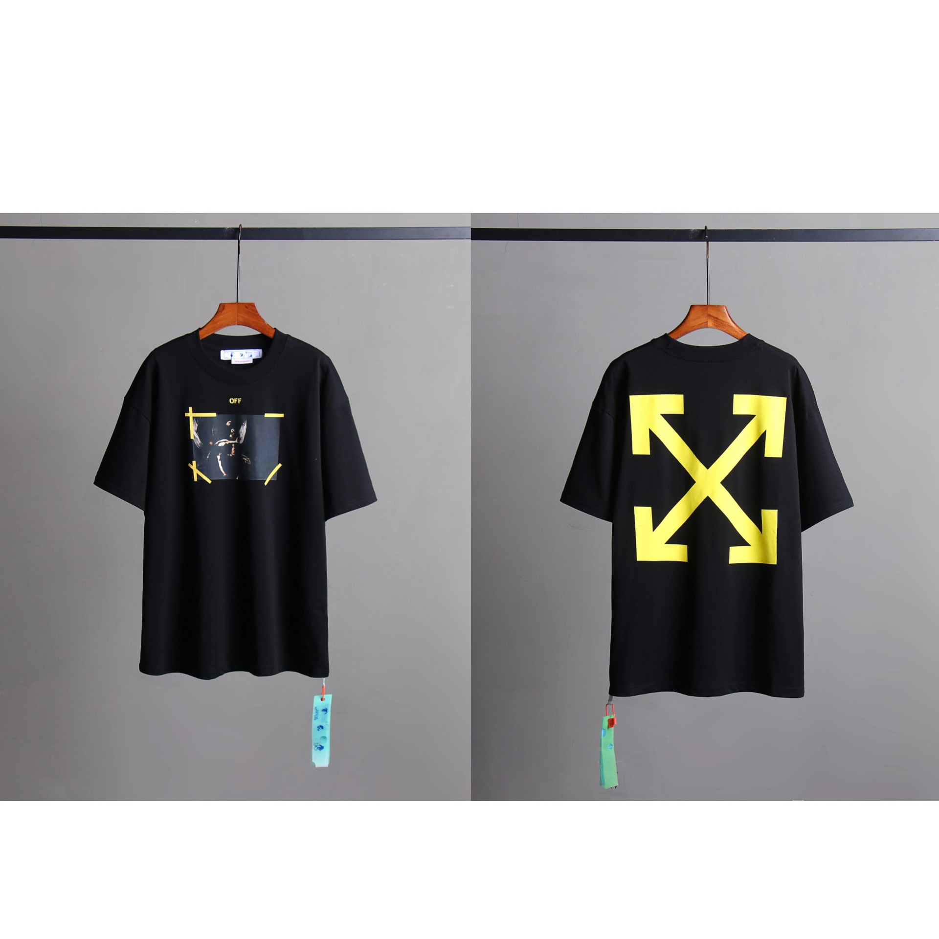 고품질 OW 자수 달 모양 배색 화살표 패턴 라운드넥 풀오버 반팔 남녀공용 라지 사이즈스토어 가기