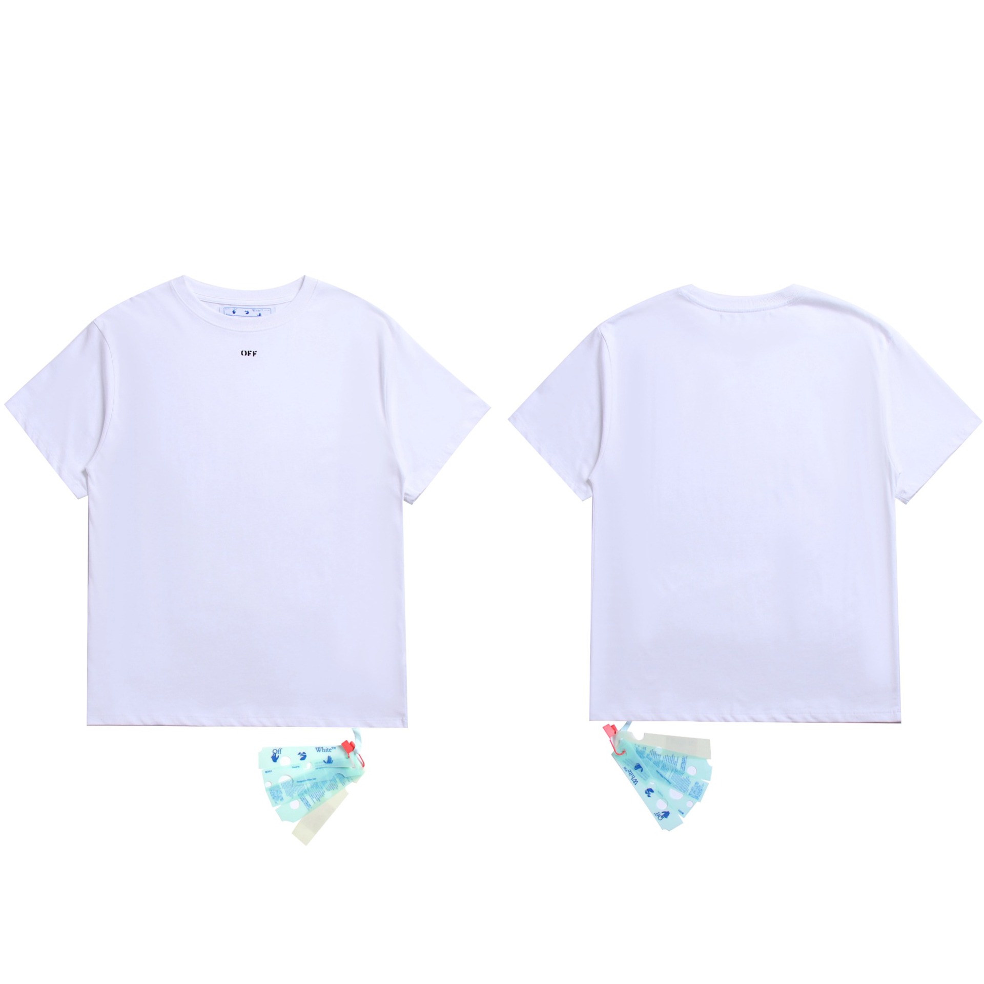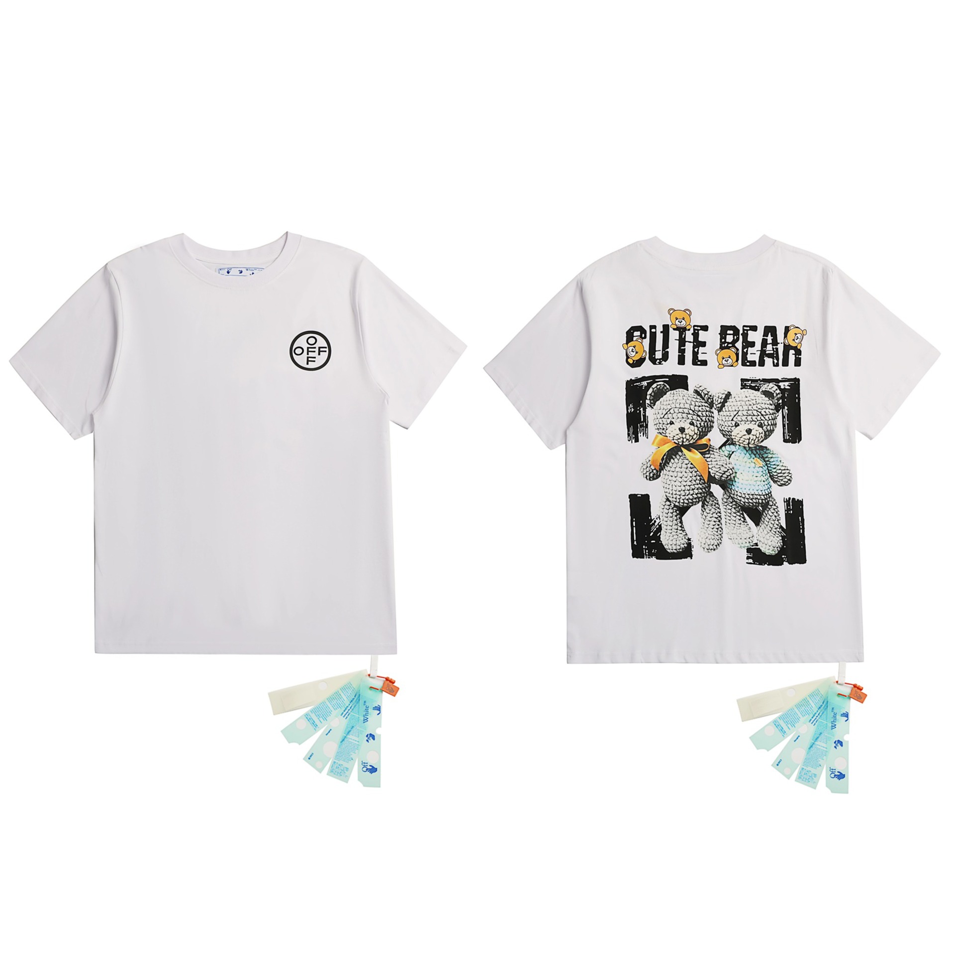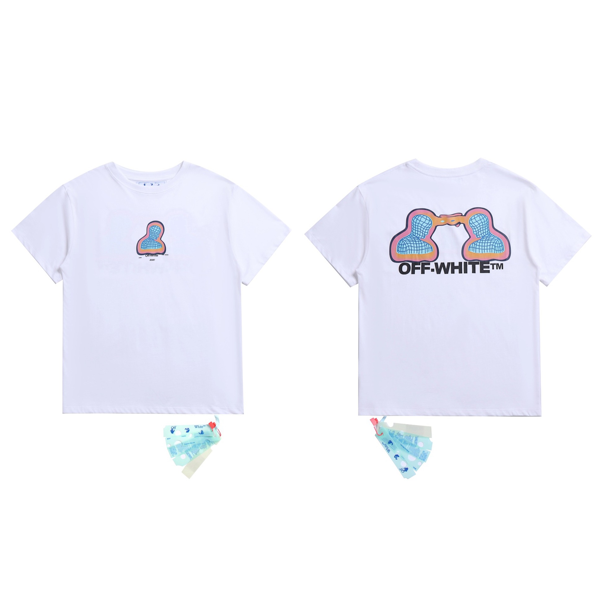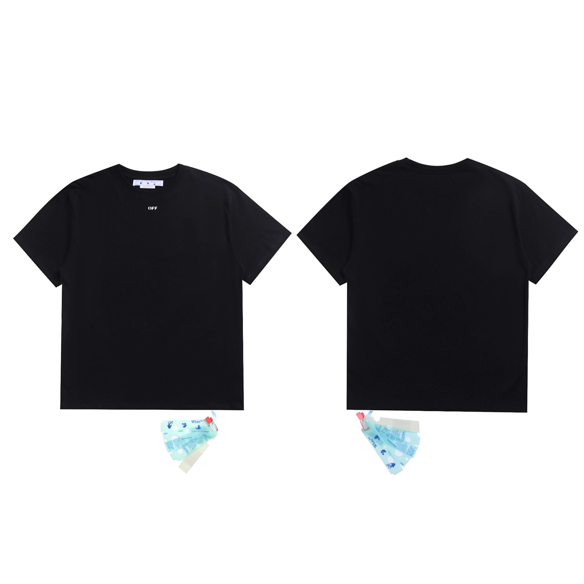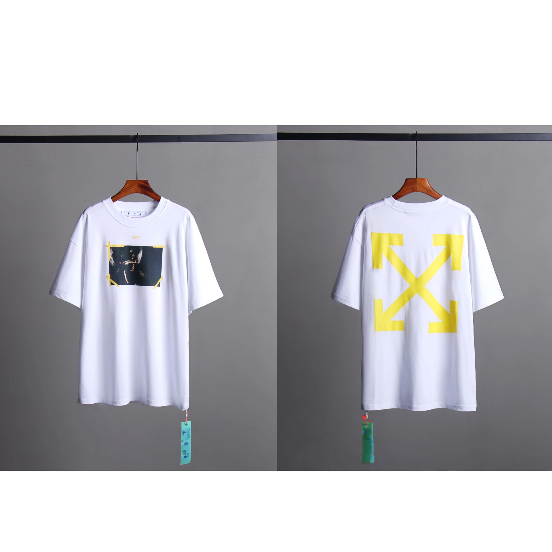 고품질 OW 자수 달 모양 배색 화살표 패턴 라운드넥 풀오버 반팔 남녀공용 라지 사이즈스토어 가기